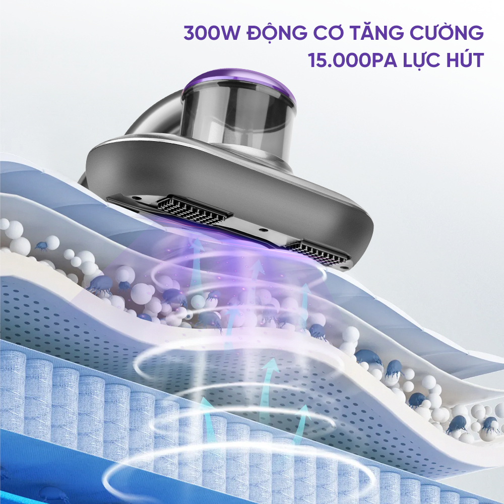 Máy hút bụi giường EYSIN [S10] Hút bụi giường nệm Lực hút mạnh 15000pa Đèn UV diệt khuẩn Lõi lọc HEPA Công suất 300W