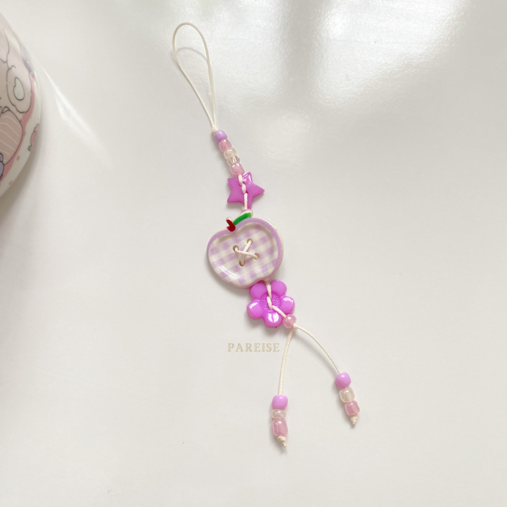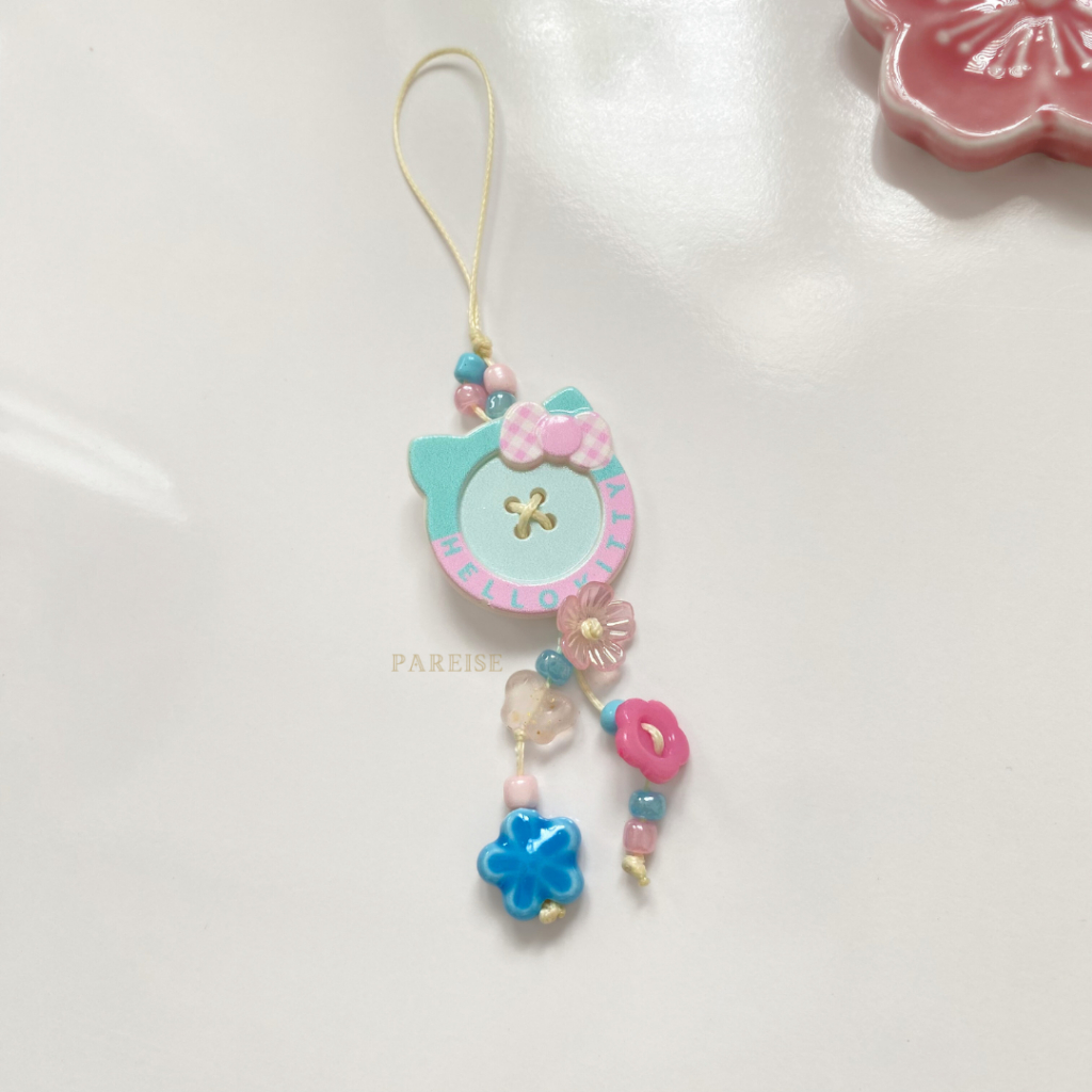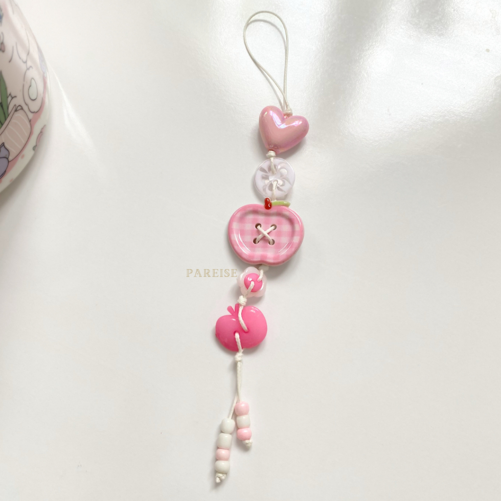Móc Khoá Nút Charm Pareise Dây Thắt Dễ Thương Hello Kitty Trái Táo
