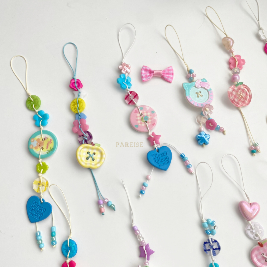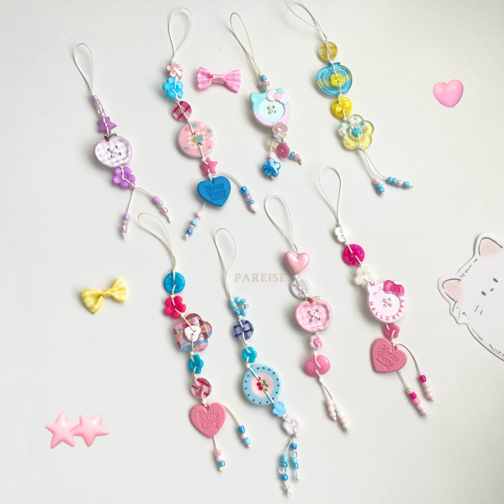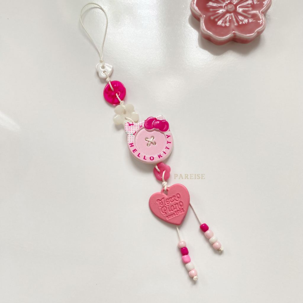 Móc Khoá Nút Charm Pareise Dây Thắt Dễ Thương Hello Kitty Trái Táo
