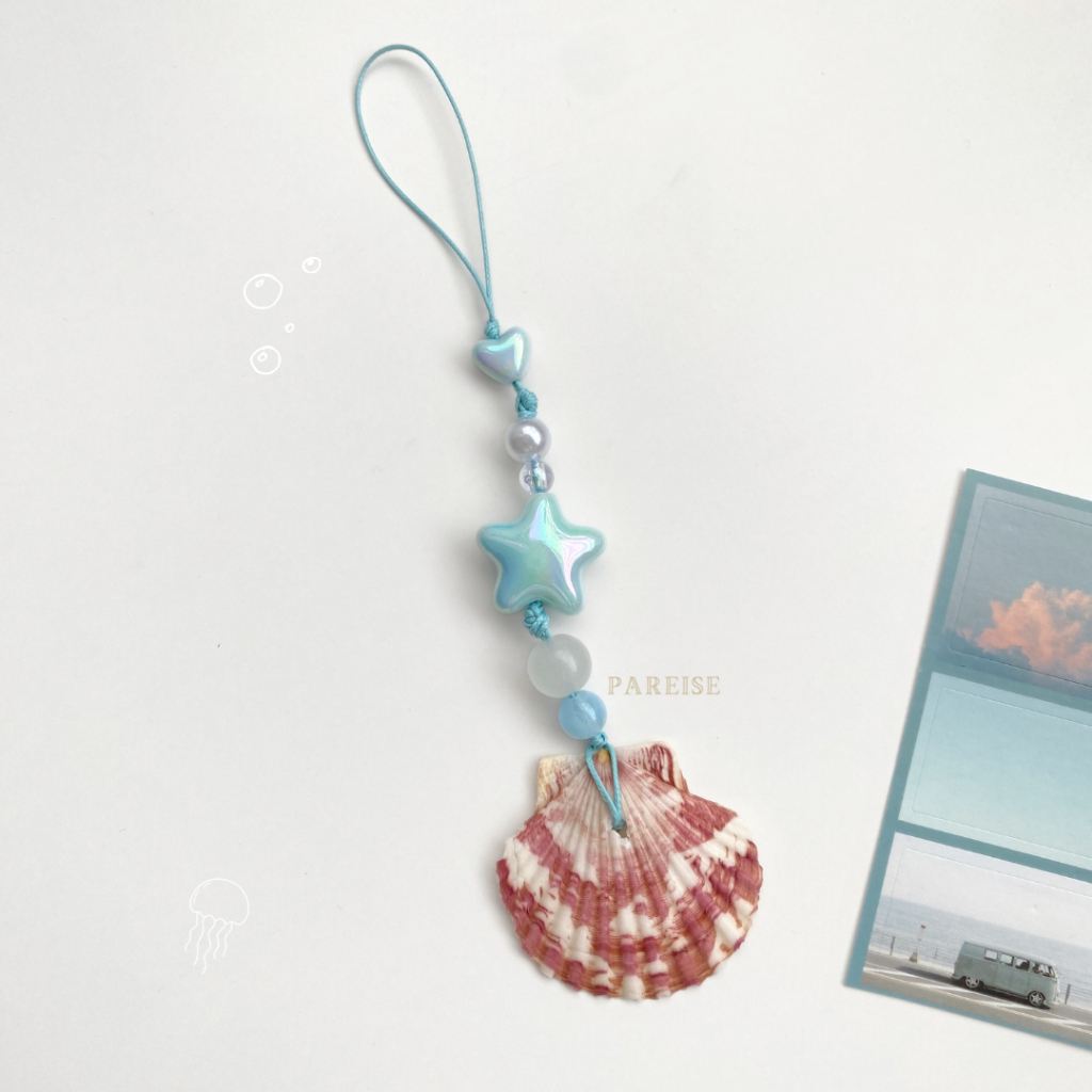 Móc Khoá Vỏ Sò Charm Thuỷ Tinh Pareise Phụ Kiện Biển Đeo Túi Ngôi Sao Trái Tim Dễ Thương