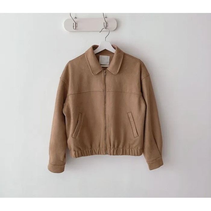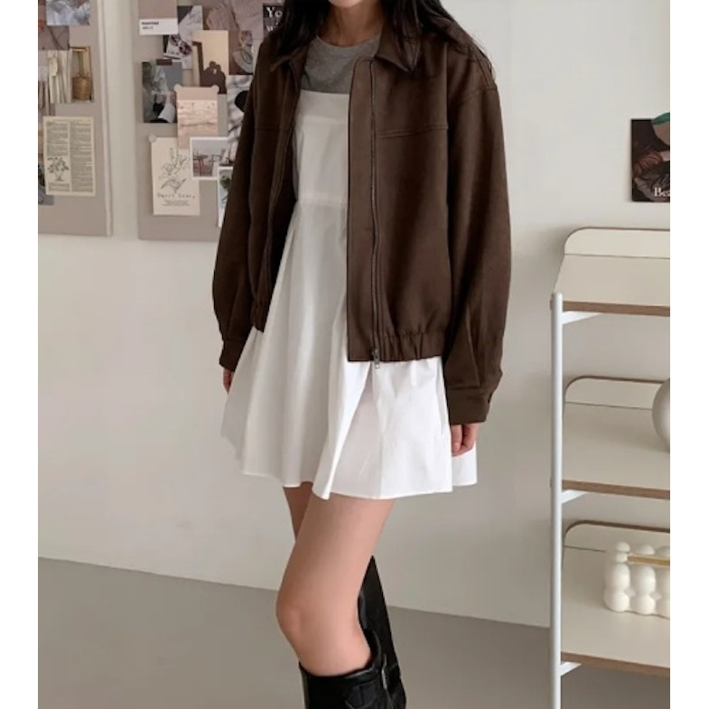 Mùa Thu Đông Mới Màu Nâu Áo Khoác Ngoài Nữ Đơn Giản Retro Dây Kéo Áo Khoác Ngắn 250827