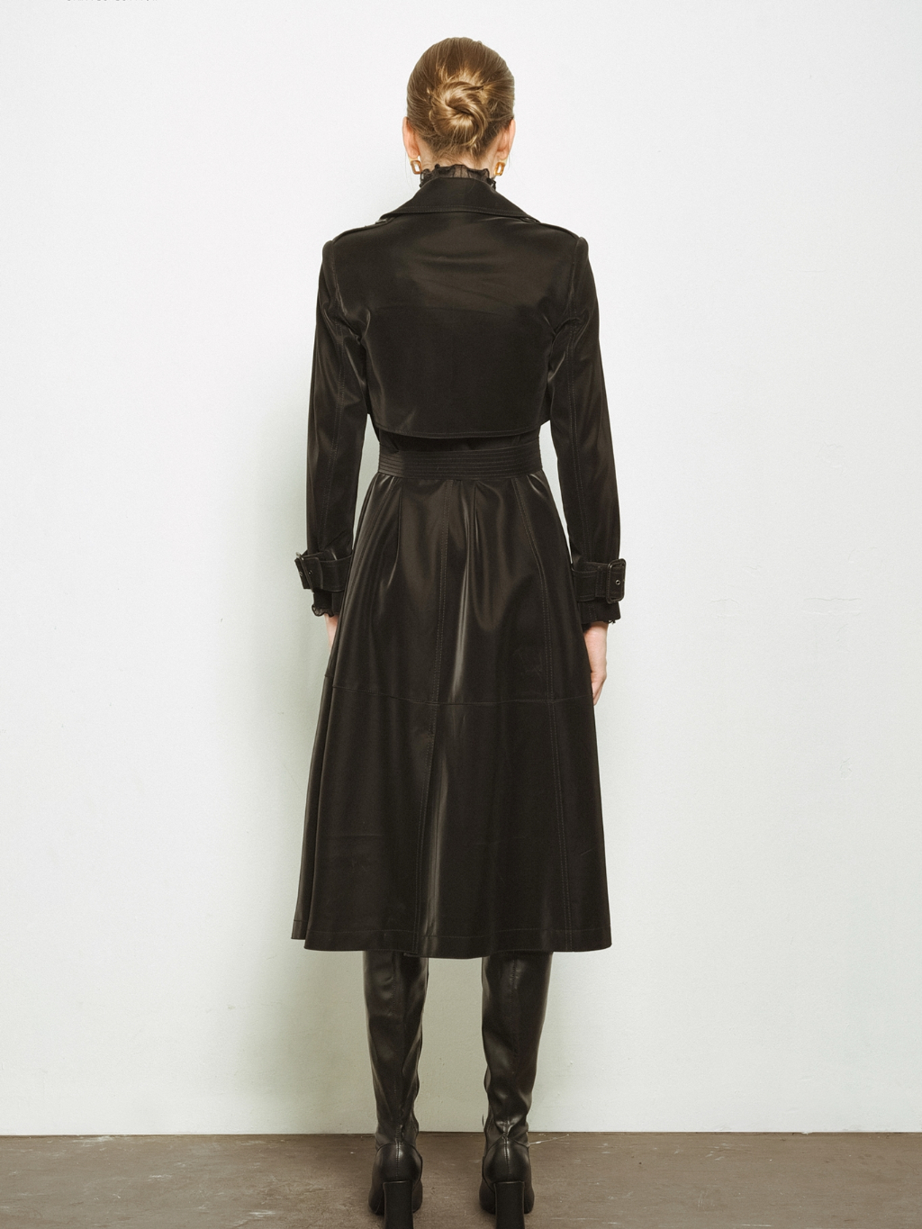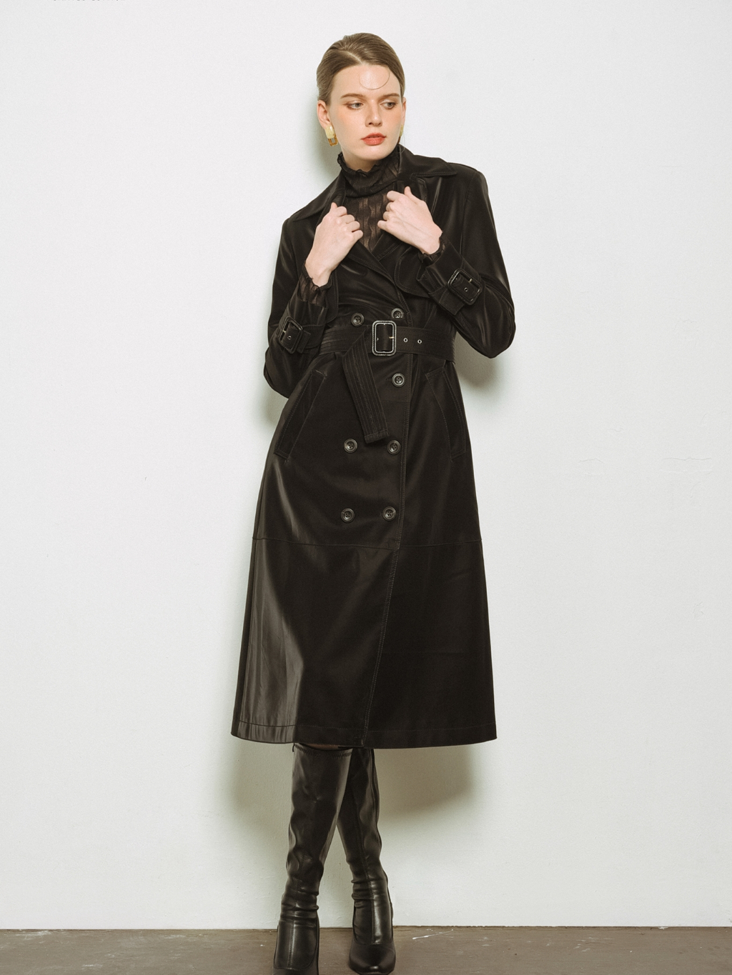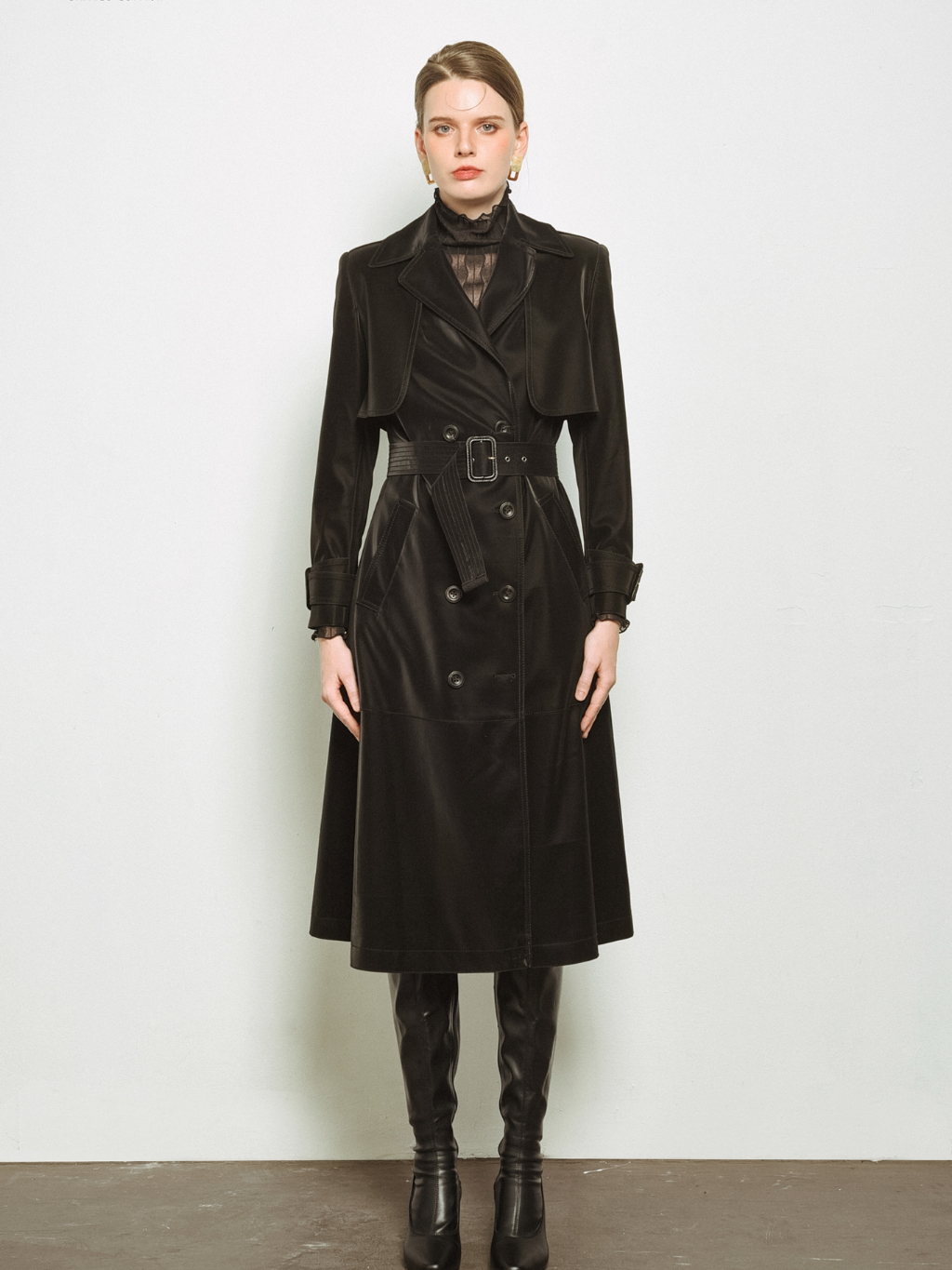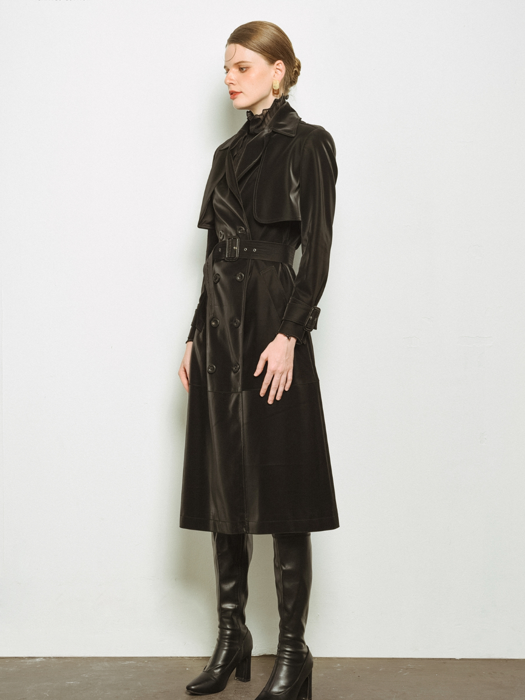 Măng Tô Đen Da Thuần Chay Nữ WHITE ANT Dáng Áo Trend Coat Hàng Thiết Kế 150700060.100