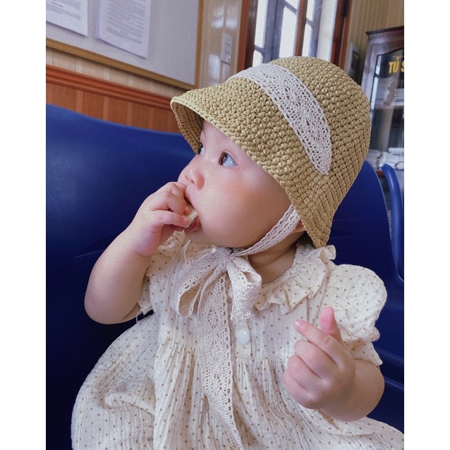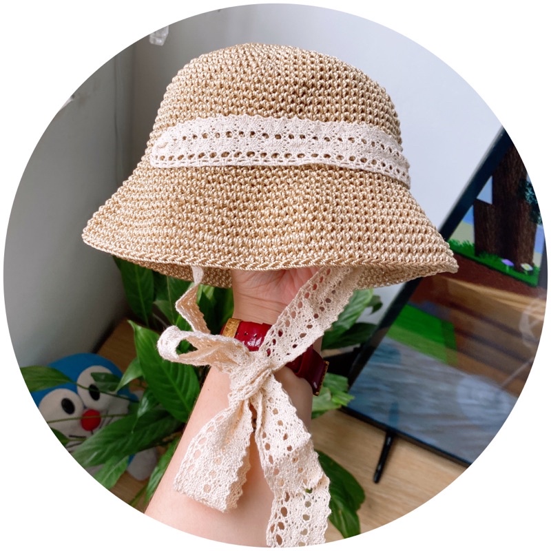 (Top 1)Mũ cói Ajuma cho bé 0-5 tuổi.5 tuổi- 10 tuổi. cho mẹ hàng sợi loại 1( mũ handmade cho bé- cho mẹ)