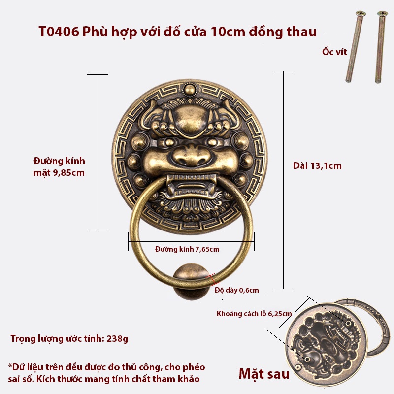 Tay nắm cửa cổng mặt sư tử bằng đồng, Tay kéo cửa đầu lân bằng đồng, Mặt hổ phù đồng hóa sát