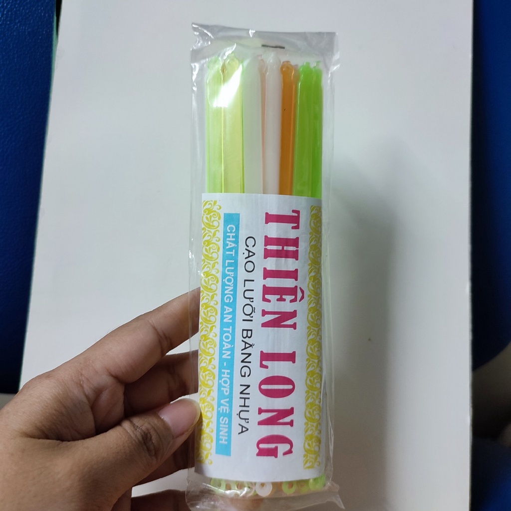Một bịch que cạo lưỡi bằng mũ hiệu Thiên Long.