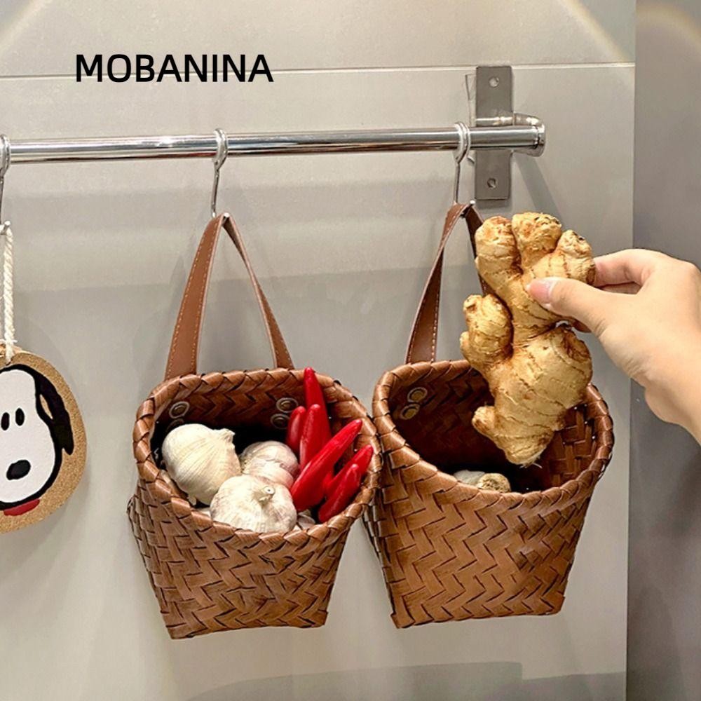 MOBANINA Giỏ đựng trái cây rau củ mây, Giỏ đựng đồ nhà bếp treo tường bằng mây PP, Chậu hoa di động Chậu dệt kiểu mây Giỏ đựng đồ trang trí nhà cửa