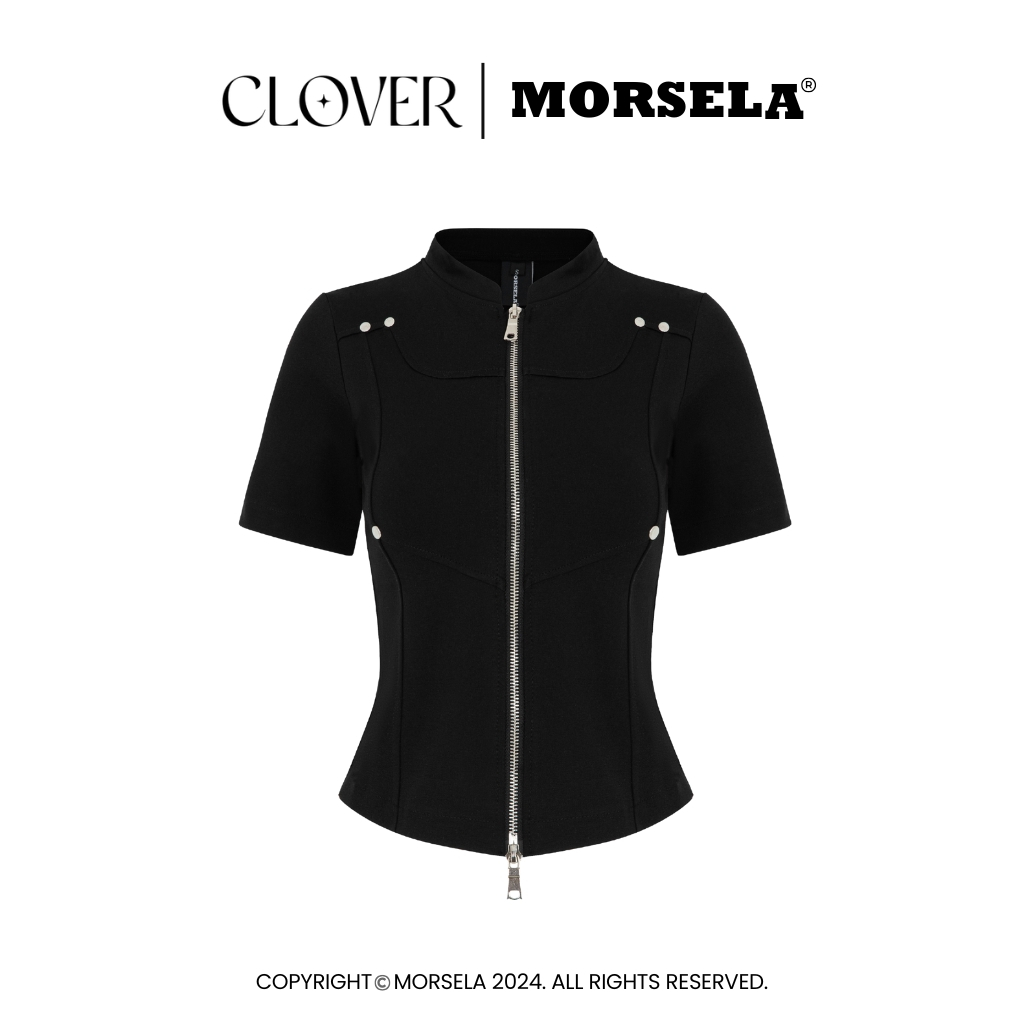 MORSELA chính hãng - Áo croptop nữ CLOVER kiểu tay ngắn khoá kéo 2 đầu phối đinh phong cách cá tính