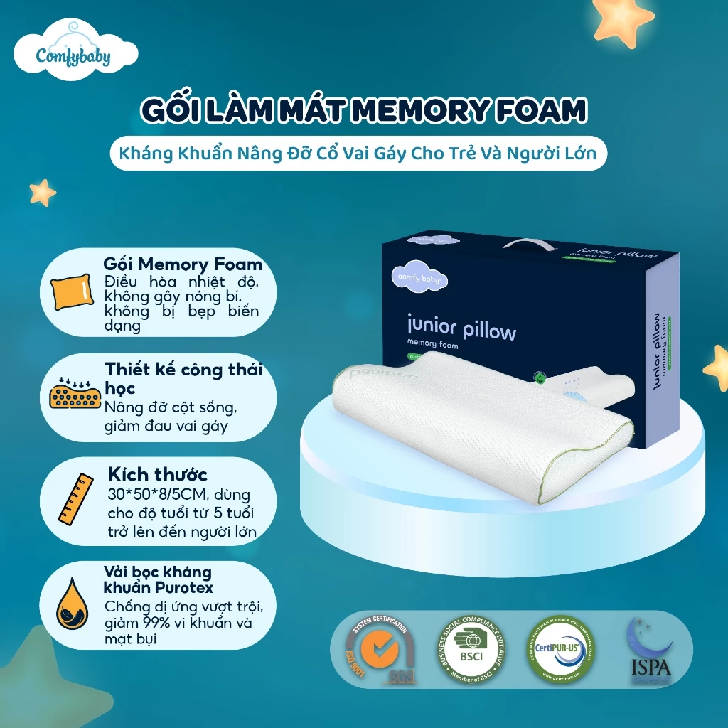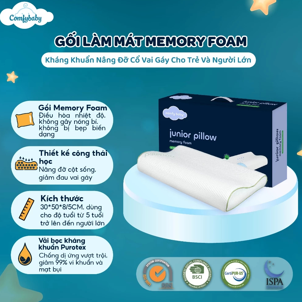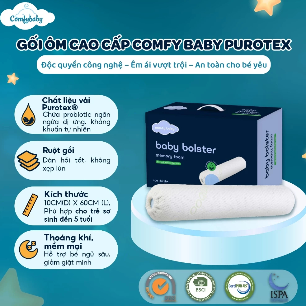 Gối Sơ Sinh Vải Sợi Tre Cao Cấp Comfybaby Kèm Vỏ, Gối Ôm Ngủ, Gối Chặn Cho Bé Hàng Xuất Khẩu