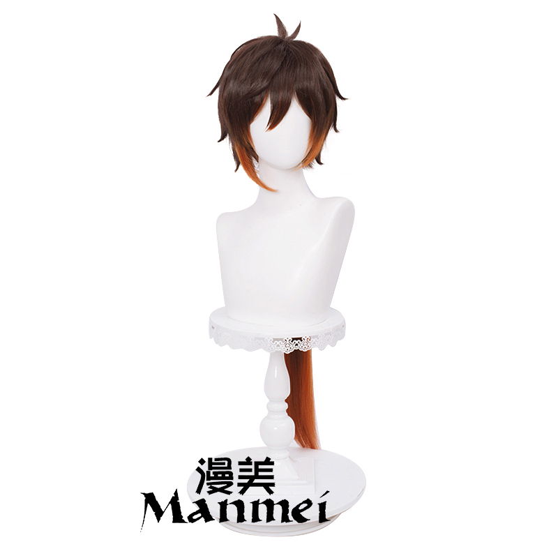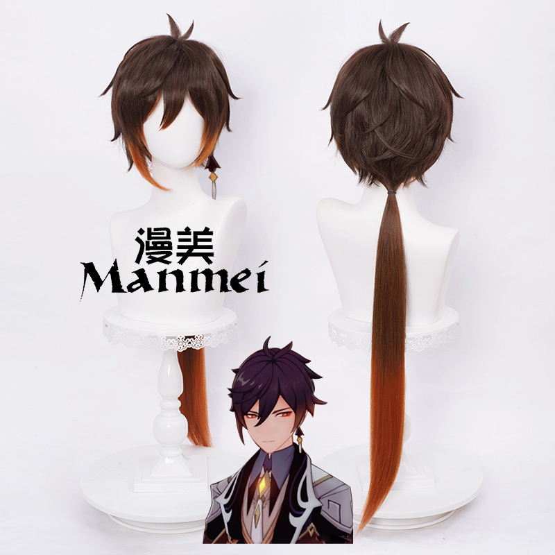 Manmei Genshin Impact Zhongli Cosplay Wig 90cm Long Brown Orange Hair Anime Heat Resistant Synthetic Wigs