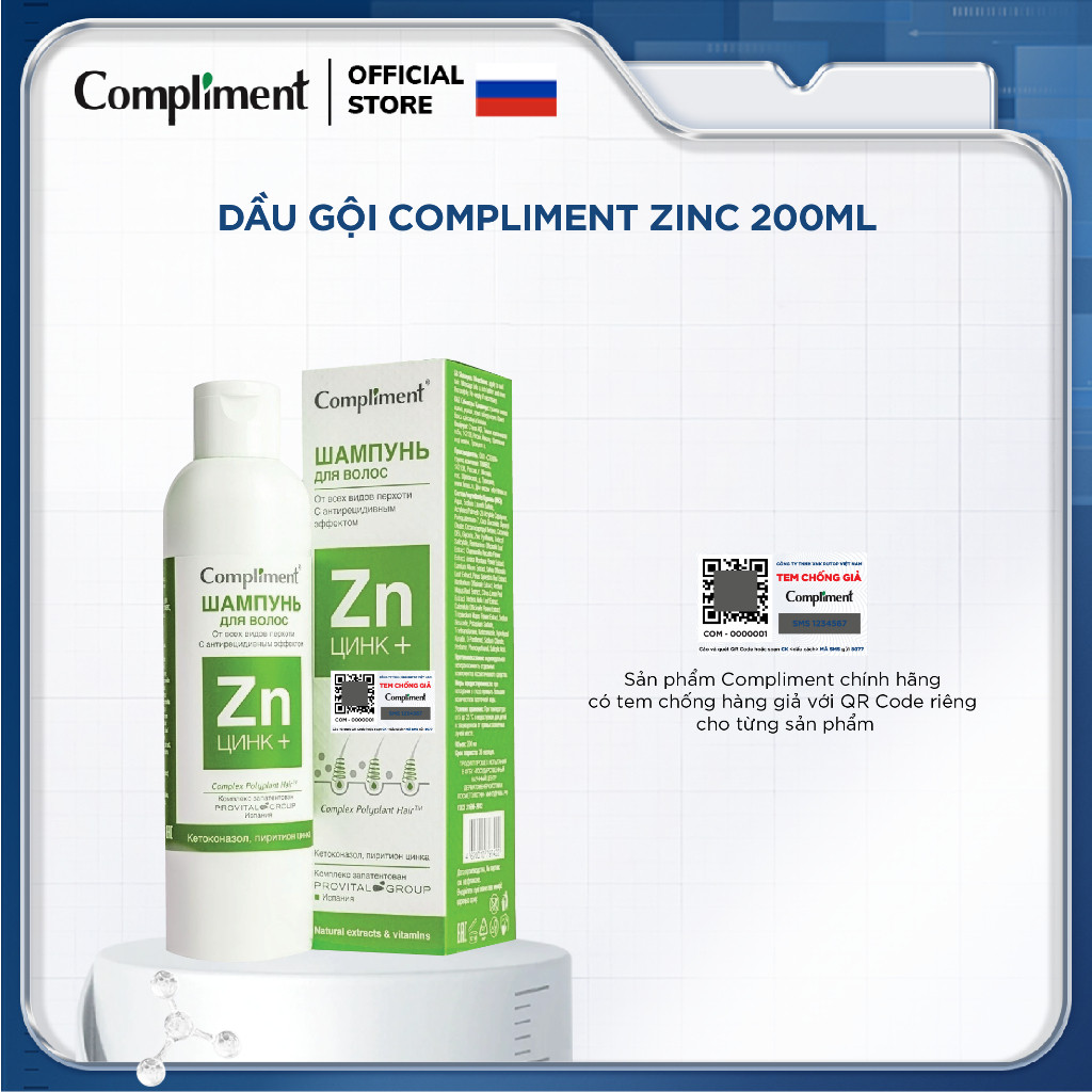 Dầu gội Compliment ZinC giảm và ngừa gàu ngứa, vảy nến da đầu 200ml