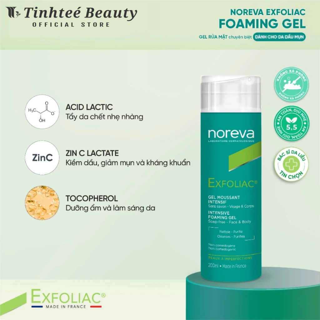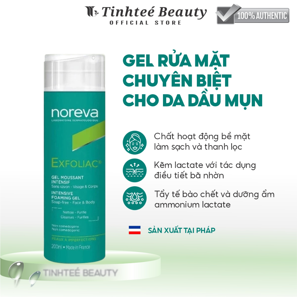 Gel Rửa Mặt Sạch Sâu Dịu Nhẹ Dành Cho Da Dầu Mụn Noreva Exfoliac Intensive Foaming 200ml LIVE