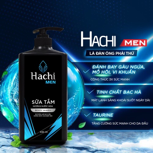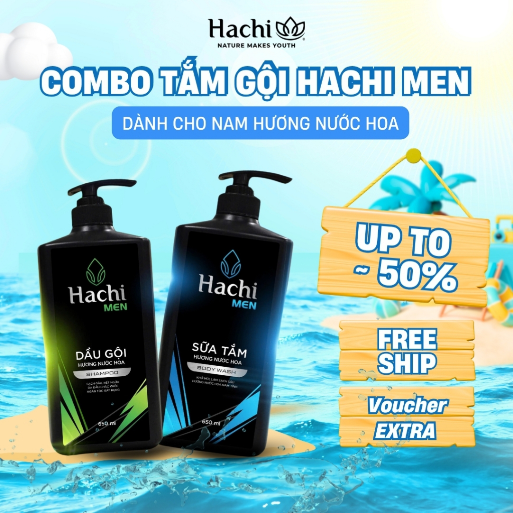 Combo Dầu Gội Sữa Tắm Chăm Sóc Toàn Diện Hachi-Men Hương Nước Hoa cao cấp 650ml/chai