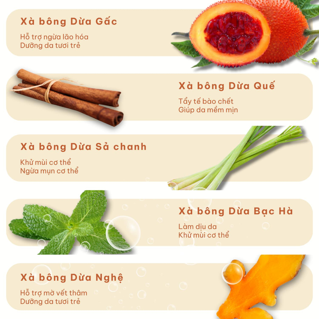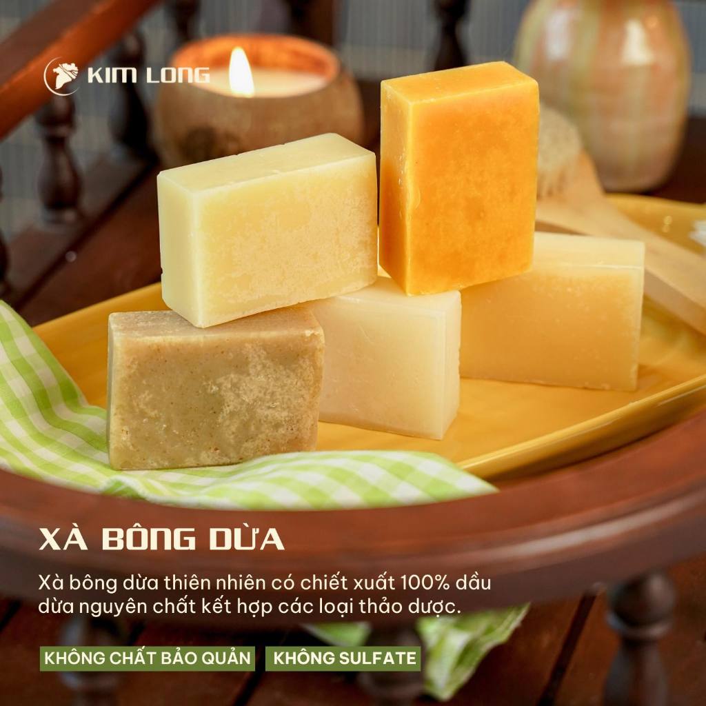 Xà bông Dừa thiên nhiên Kim Long 100gr, Xà phòng tự nhiên an toàn, lành tính