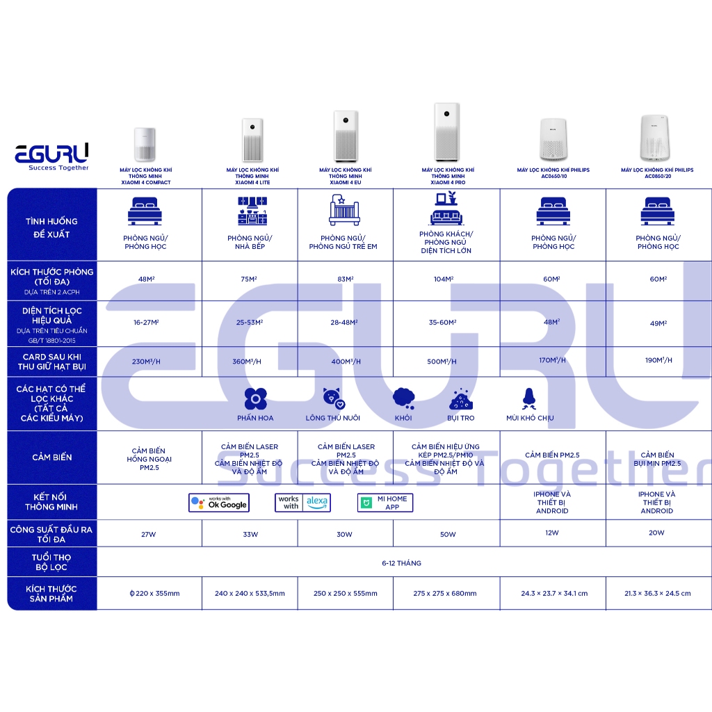 Máy Lọc Không Khí Xiaomi Smart Air Purifier 4 Lite EU | 4 Compact | 4 Pro | BH 12 Tháng Chính Hãng