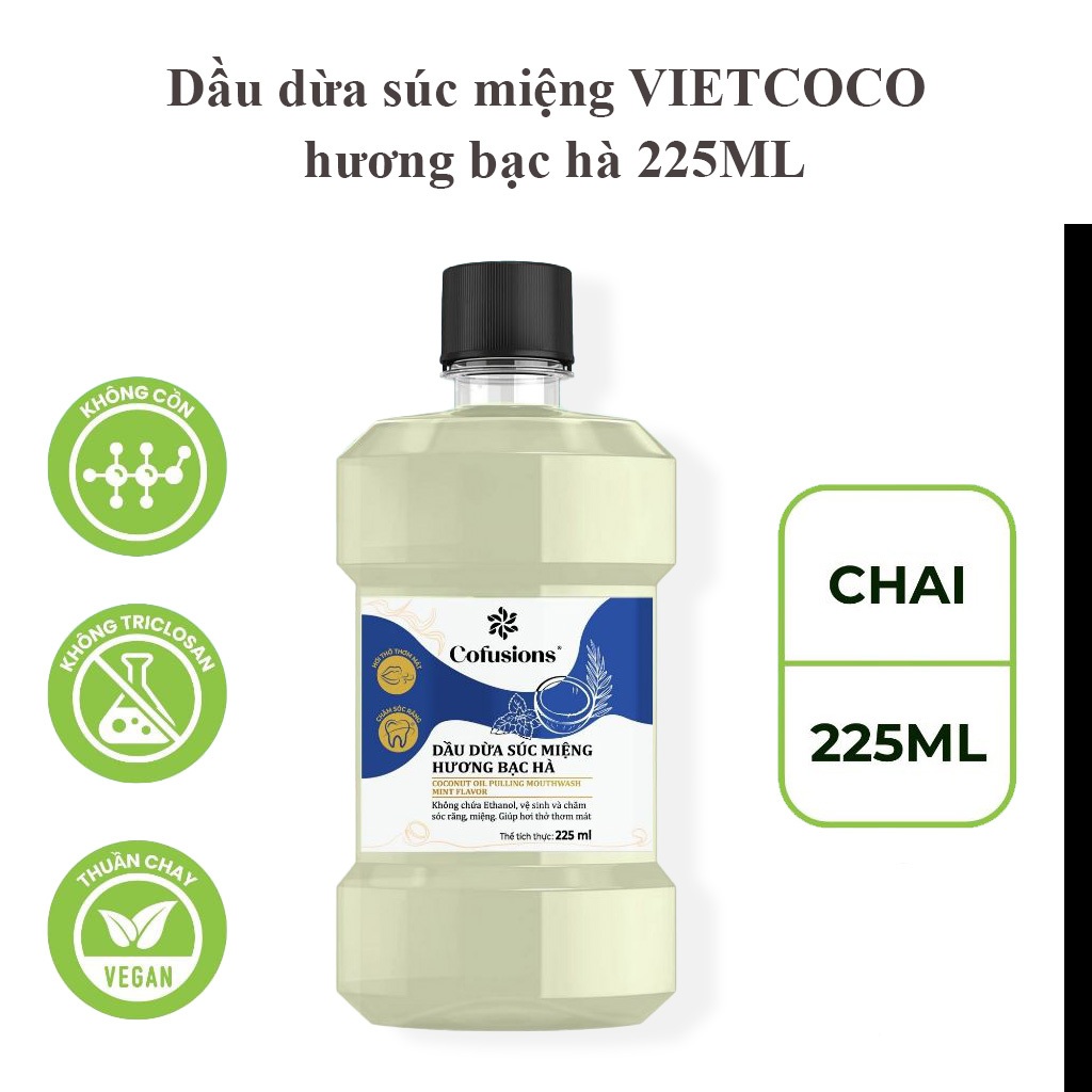 (Nhãn mới CFS) Nước Súc Miệng Vietcoco 225ml Hương Bạc Hà – The Mát, Sạch Miệng, Thơm Hơi Thở, Ngừa viêm nứu