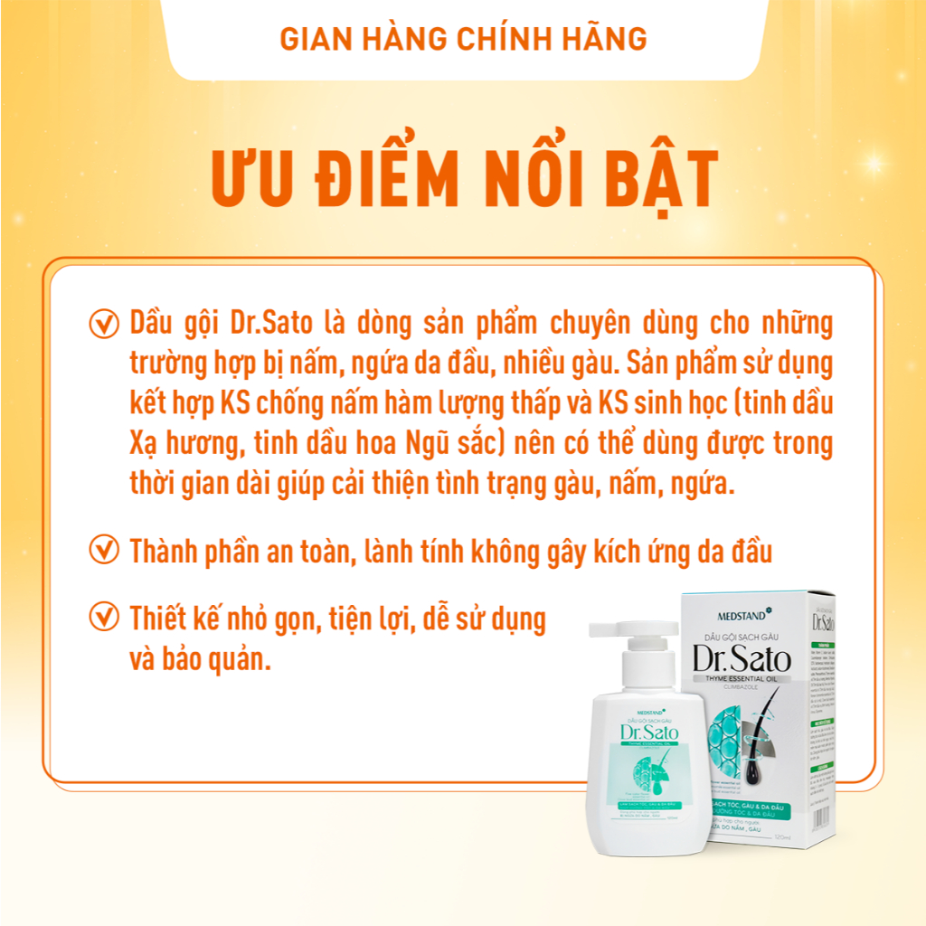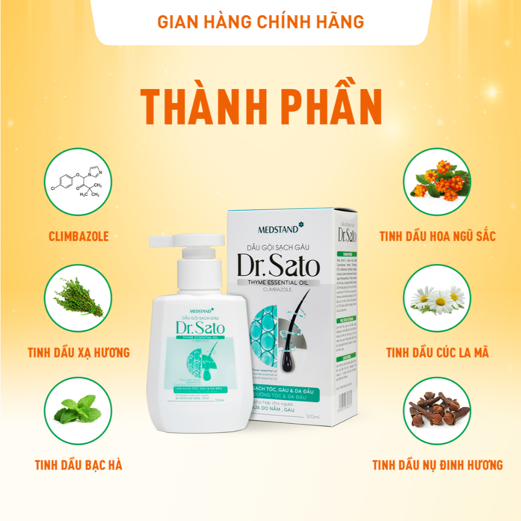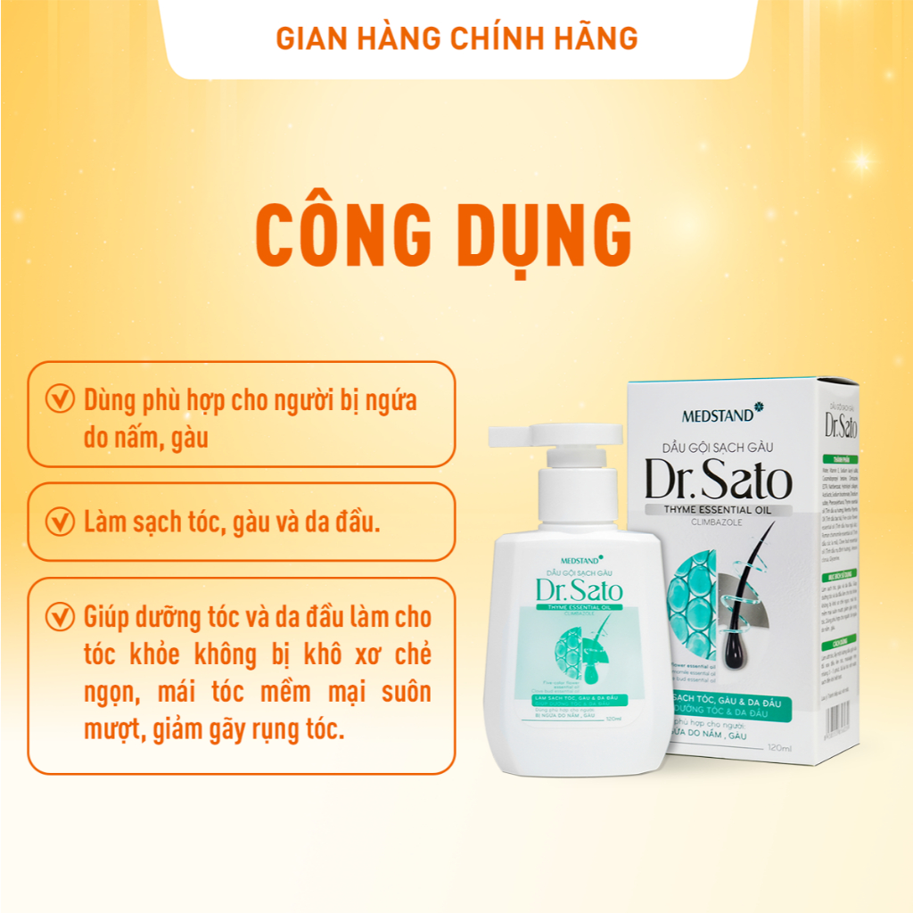 Dầu gội Dr.Sato hỗ trợ gàu, nấm, ngứa da đầu, giúp dưỡng tóc và da đầu, giảm khô xơ, gãy rụng