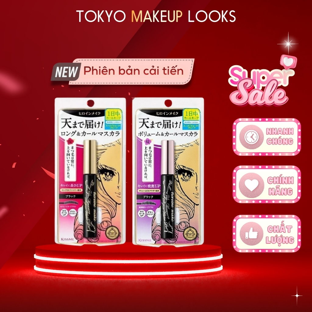Chuốt Mi Mascara Kissme Siêu Bền Giúp Nâng Cong Và Dày Rậm Mi Tối Đa Kissme Heroine Mascara WP 6G Mi dài hơn 5mm