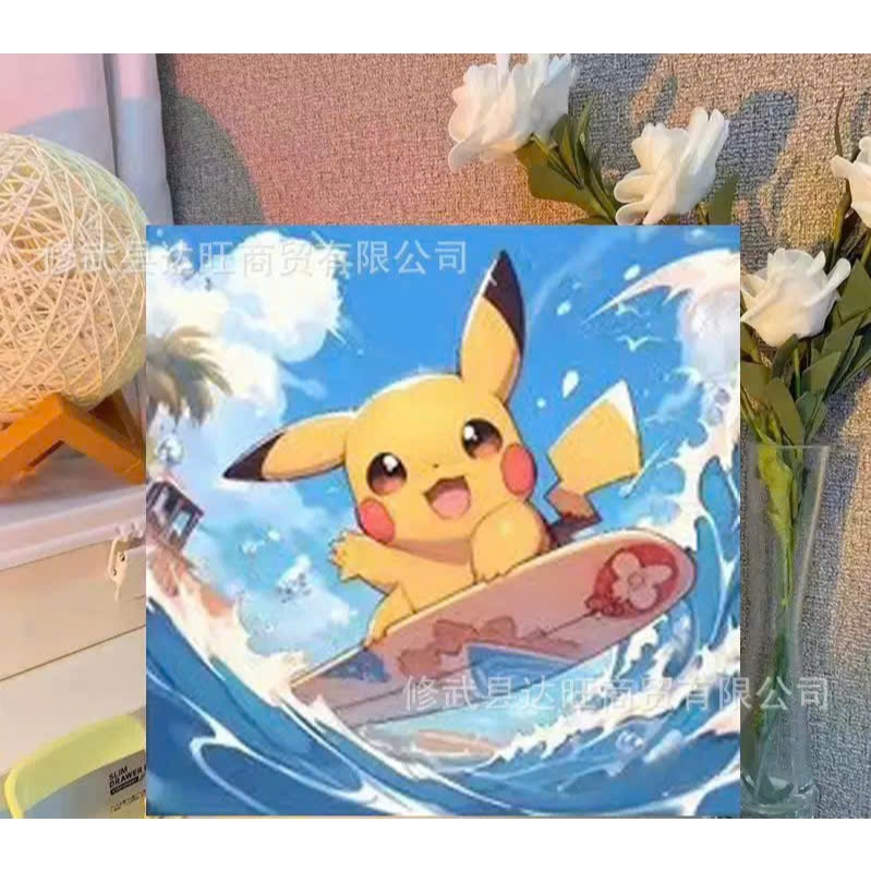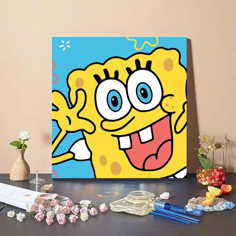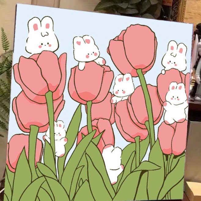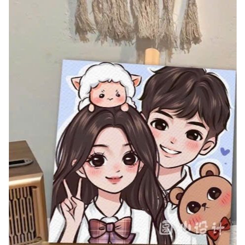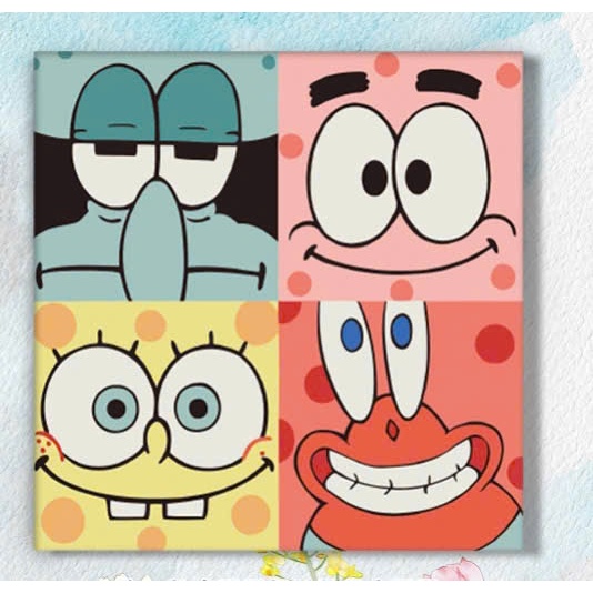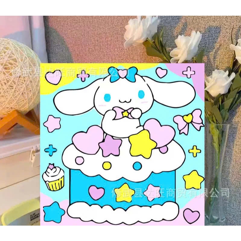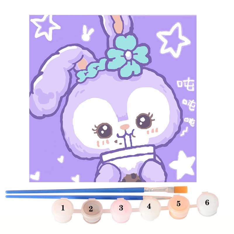 Tranh tô màu số hóa đã căng khung kèm màu, cọ size 20x20, tranh số hóa hoạt hình, bé ba, phong cảnh, loopy, cappy bara