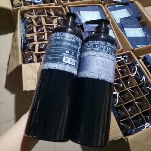 BỘ DẦU GỘI XẢ CHO TÓC KHÔ HƯ TỔN HISCHER ARGAN OIL FOR DRY & DEMAGED HAIR SHAMPOO & CONDITIONER 1000ML
