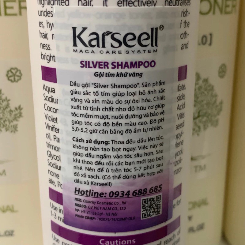 DẦU GỘI TÍM KARSEELL NO YELLOW SILVER SHAMPOO KHỬ ÁNH VÀNG CHO TÓC TRẮNG BẠCH KIM