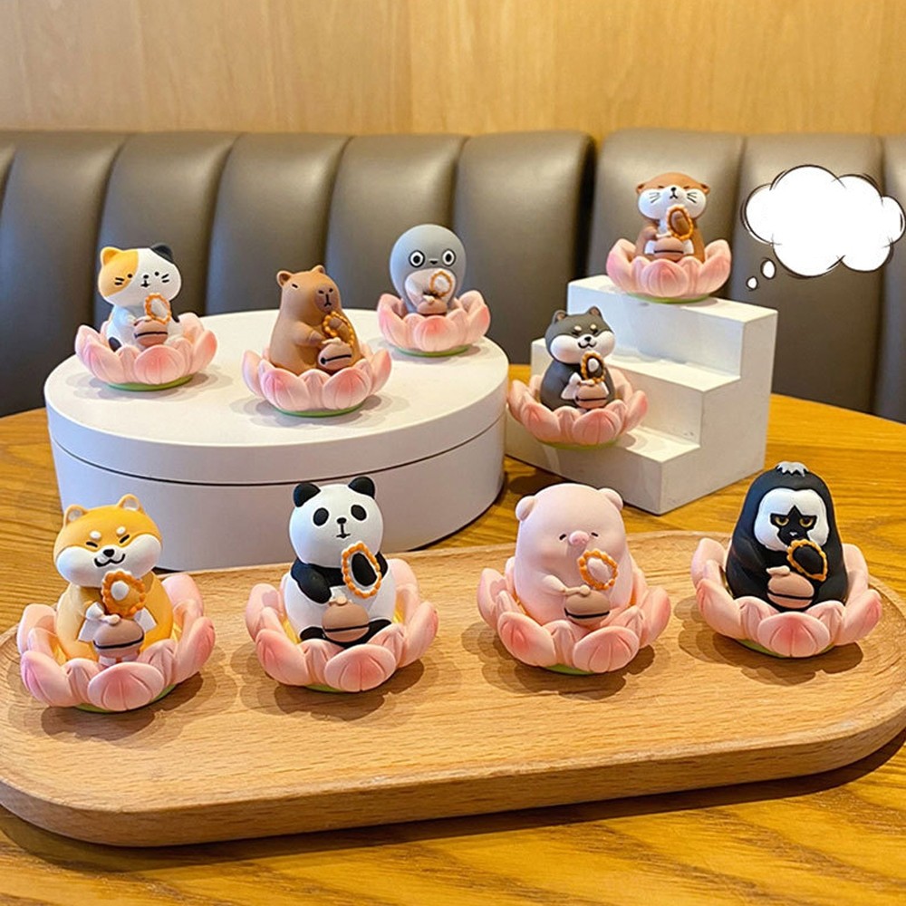 Mô hình tượng thú ngồi thiền đài sen Lucky Lotus - Capybara Shiba tĩnh tâm để bàn sưu tầm