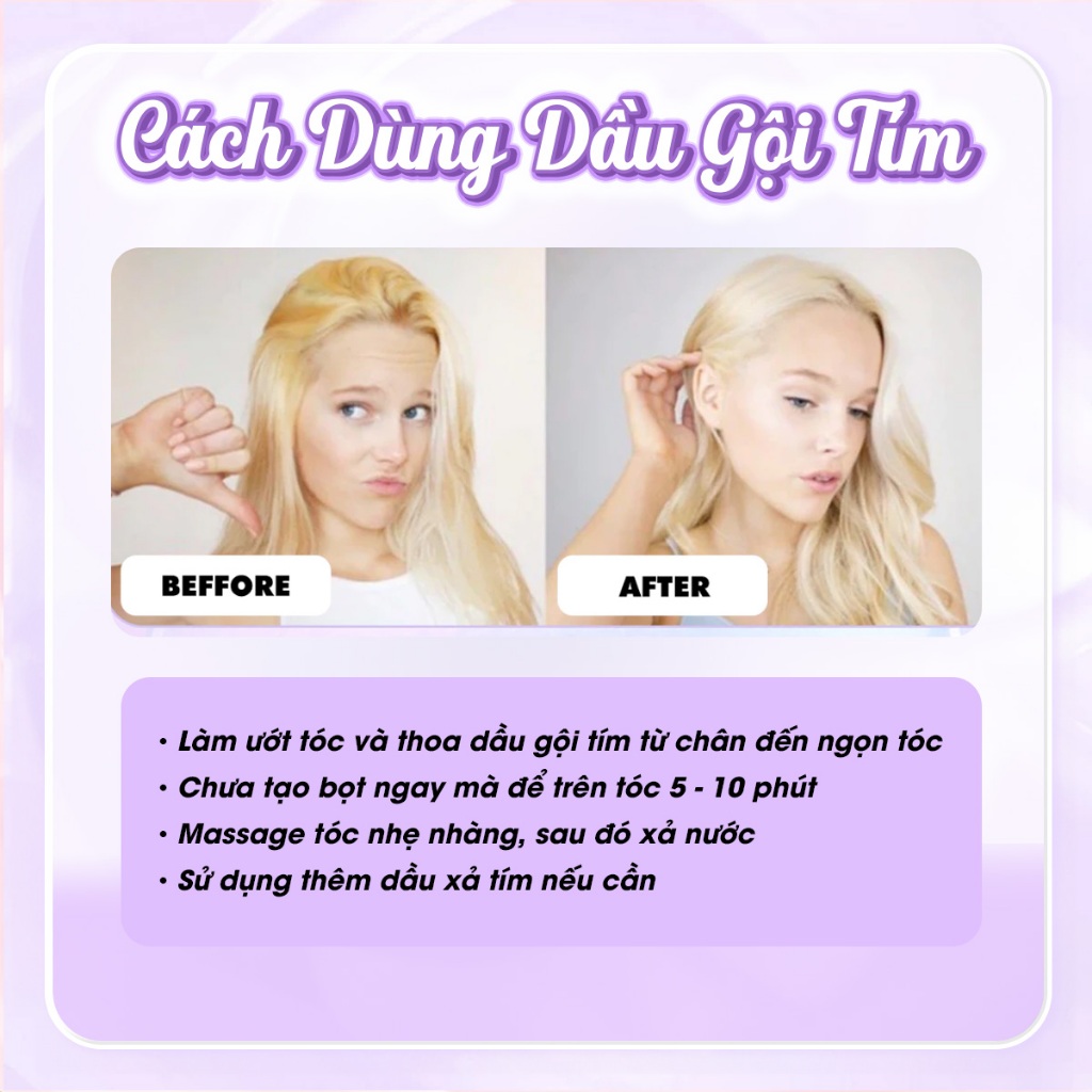 Dầu gội tím khử vàng, dầu gội tím MERRY HAIR, giúp tóc khử sắc tố vàng và bền màu hơn, sử dụng 5-10 lần