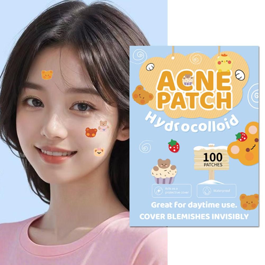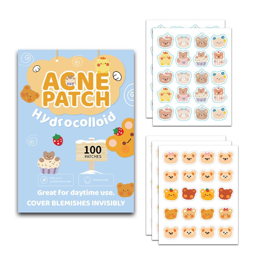 Hoạt Hình Mụn Miếng Dán Nhiều Màu Sắc Gấu Dễ Thương PE Acne Covering Patch Chăm Sóc Da Mặt 100 Cái / Hộp