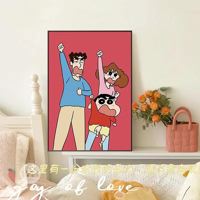 Tranh trang trí Dopamine gia đình Shin bút chì