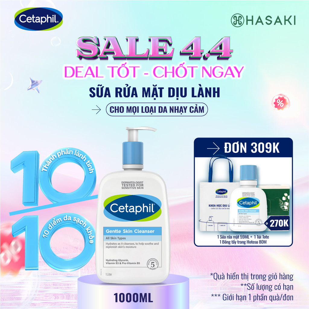 [LIVE 2.4] [DAILY] Sữa Rửa Mặt Cetaphil Dịu Lành Cho Da Nhạy Cảm 1000ml Hasaki Sản Phẩm Chính Hãng