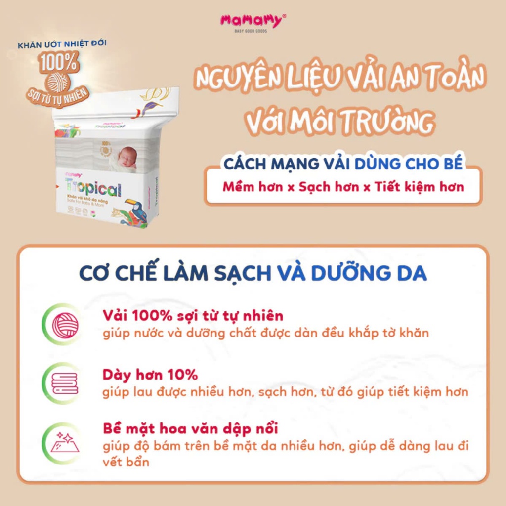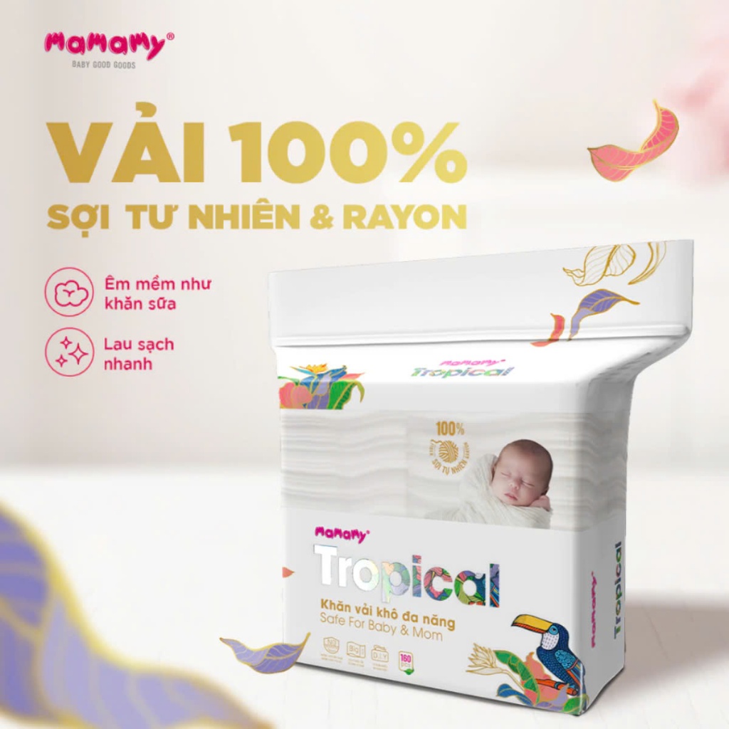 Khăn khô đa năng Mamamy Tropical cao cấp an toàn dành cho mẹ và bé 160 tờ/túi
