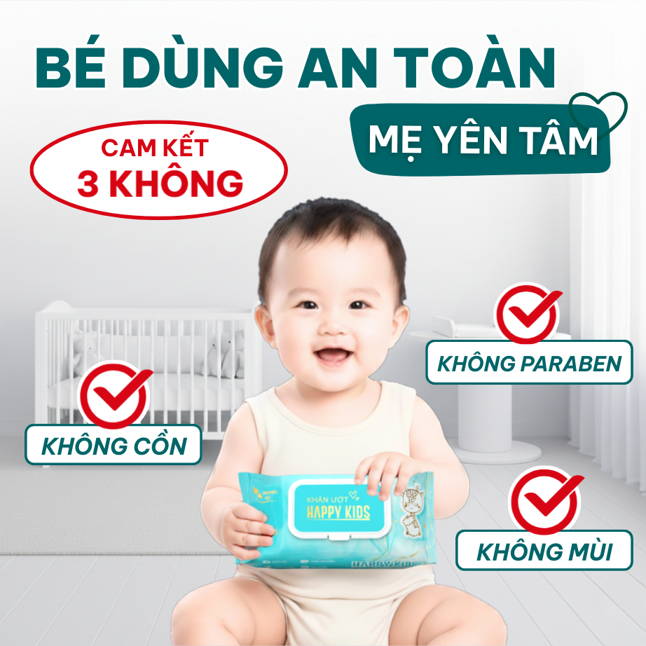 Khăn Ướt Happy Kids 100 Tờ [An Toàn Sơ Sinh - Mềm Mịn] Giấy Ướt Không Mùi, Kháng Khuẩn, Ngừa Hăm