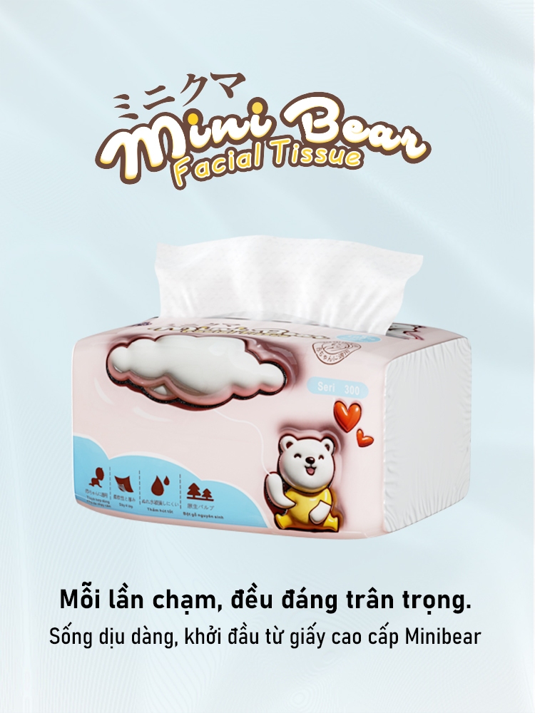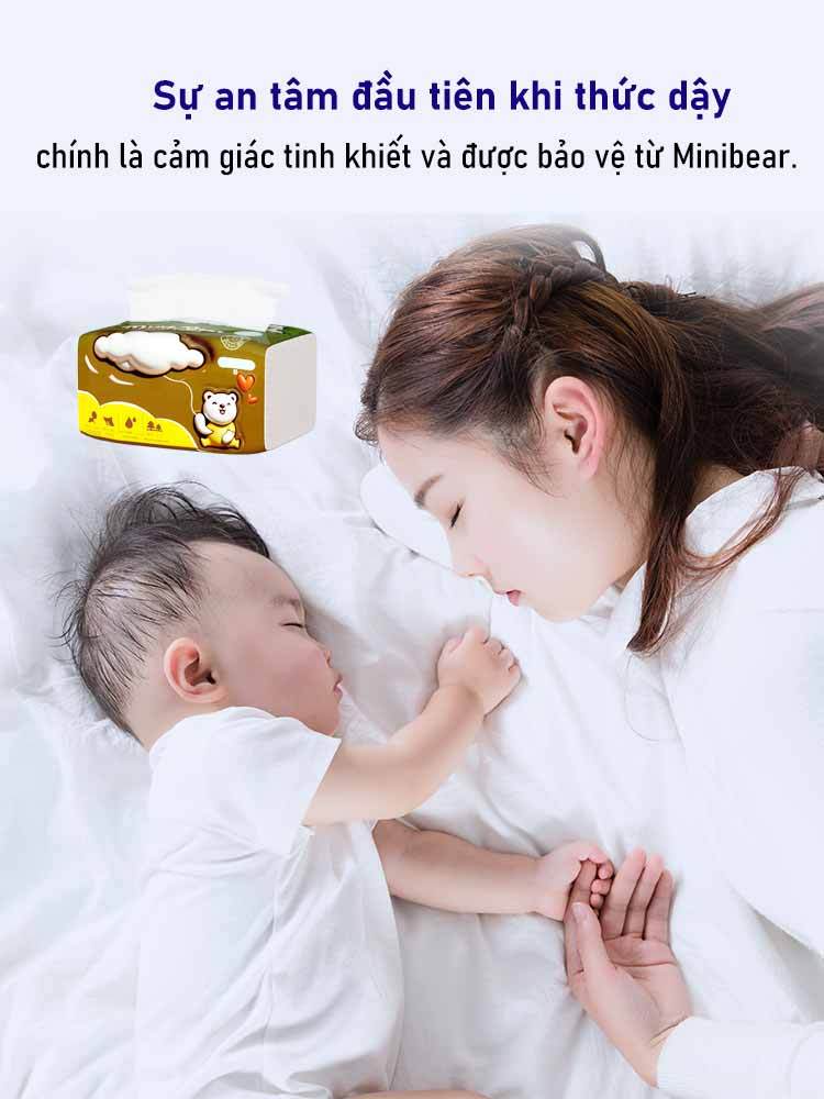 Khăn giấy rút cao cấp Minibear 1 lốc 8 gói 100% bột gỗ nguyên sinh 4 lớp dày không bụi,Giấy ăn dai hơn dùng cực thích