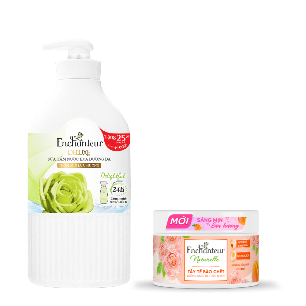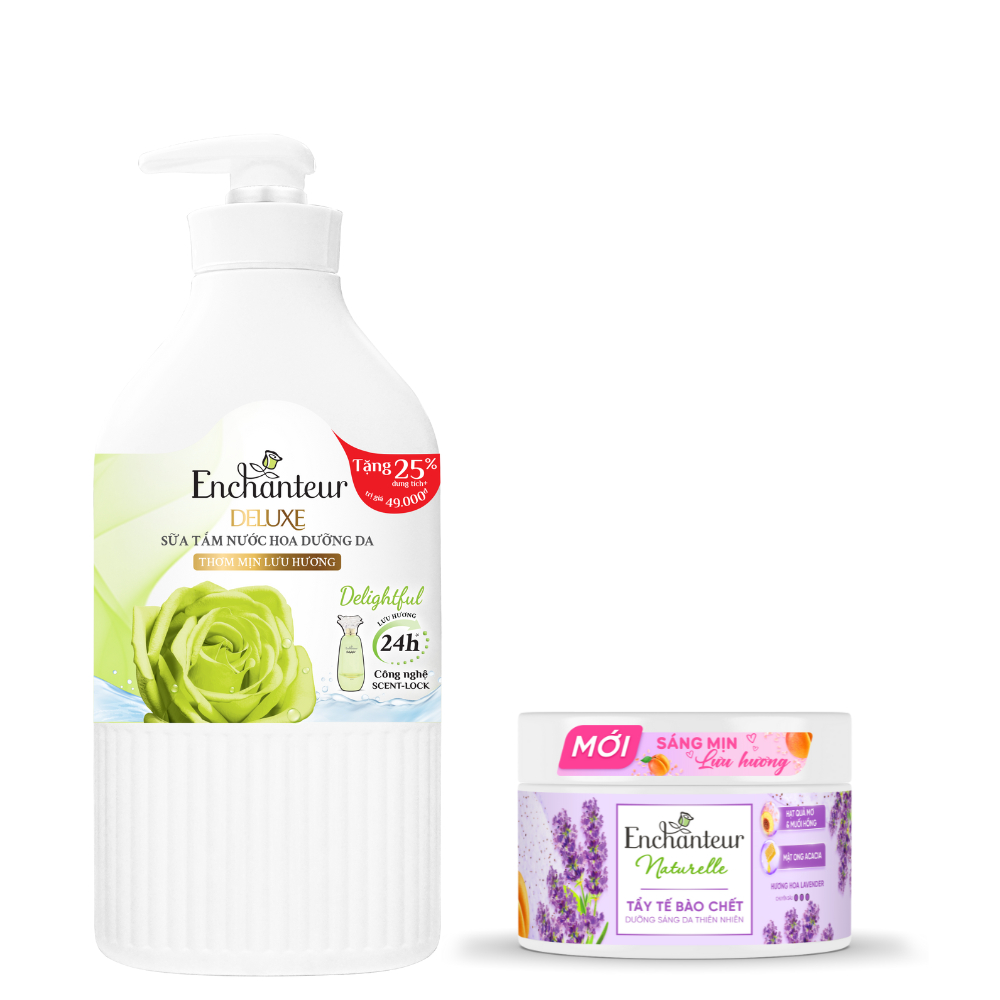 Bộ đôi Sữa tắm 510g & Tẩy tế bào chết 250g dưỡng da thiên nhiên Enchanteur Naturelle