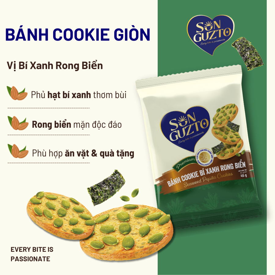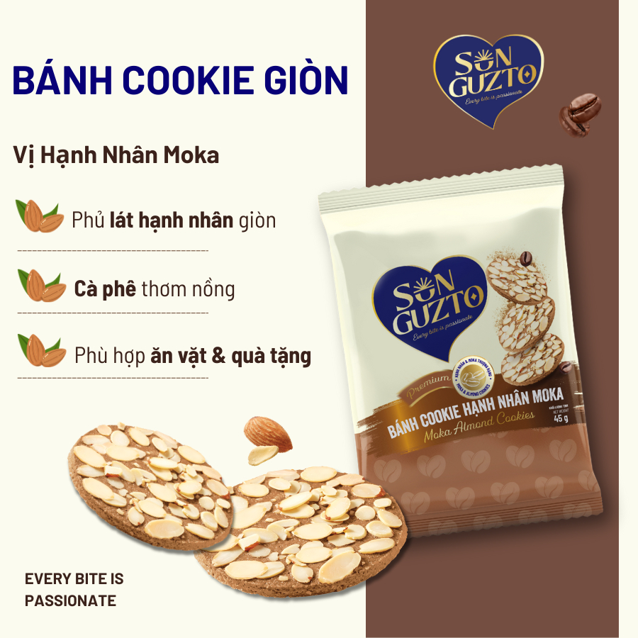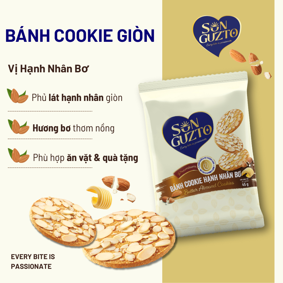 [ĐƠN TỪ 219K TẶNG 1 GÓI COOKIE 45G BẤT KỲ + 1 TÚI SEASONAL] Cookie hạnh nhân giòn Sun Guzto 45g - Bánh cookie