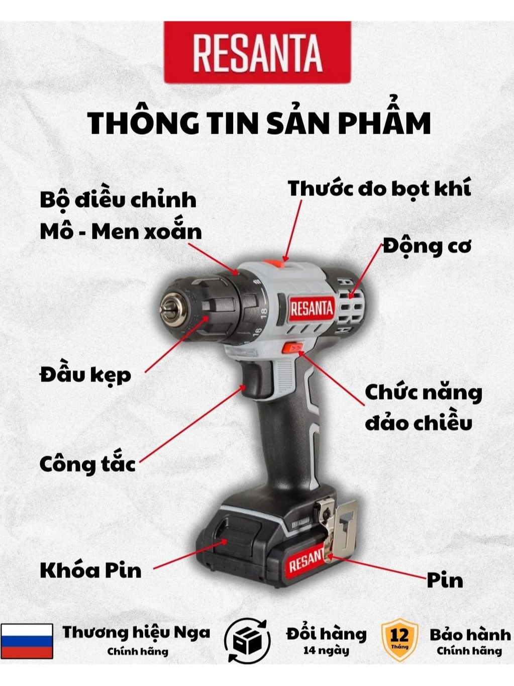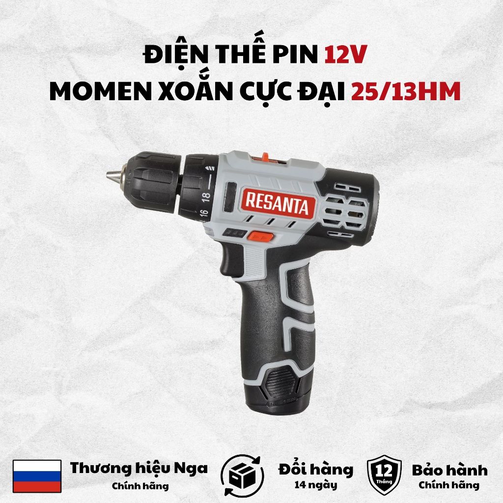 [Tặng Hộp + 2 Pin] Máy Vặn Vít RESANTA 12/16/20V-75/14/16Nm | Pin 2Ah Khoan Gỗ 30mm Thép 12mm