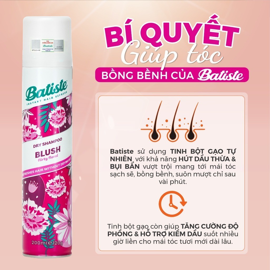Dầu Gội Khô Batiste Xịt Khô Tóc Batiste Dry Shampoo Tạo Phồng Không Cần Nước Cho Tóc Dầu 200ml Giảm Bết - LINASHOP