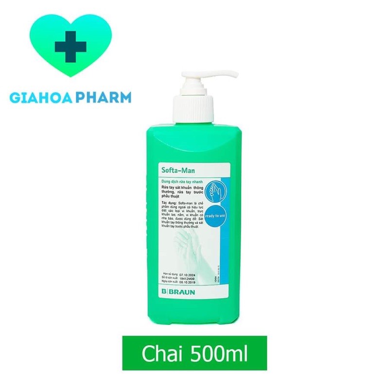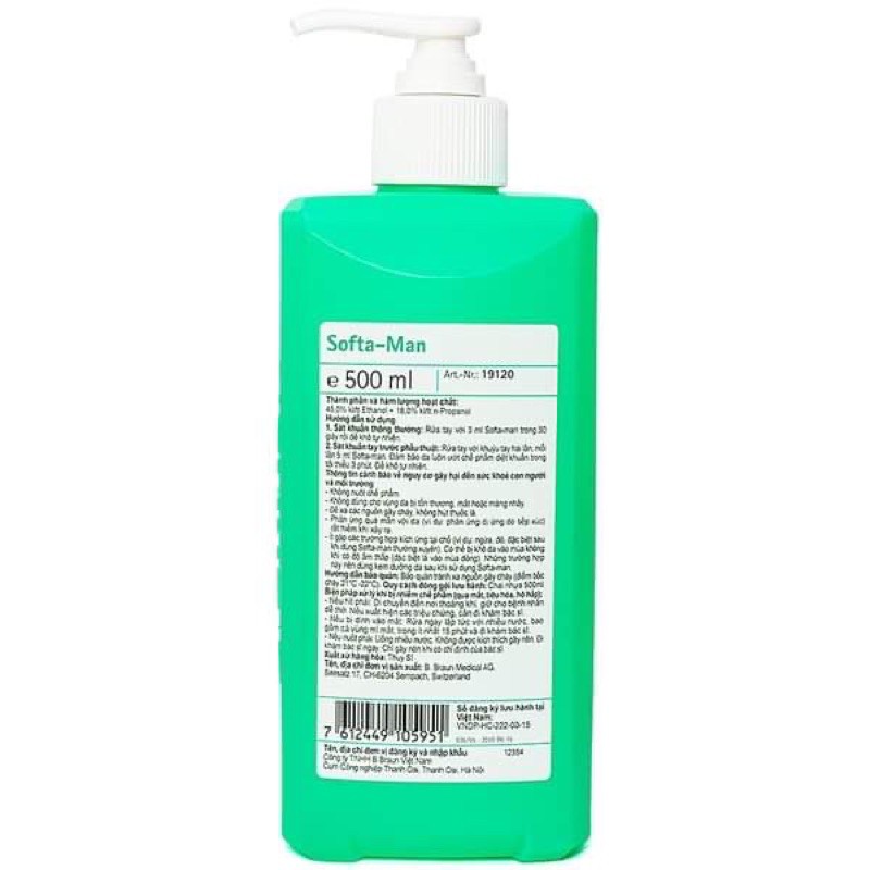 Dung dịch nước rửa tay nhanh SoftaMan / Softa Man (B.Braun) chai 500ml - Diệt khuẩn, dùng trong phòng khám, bệnh viện