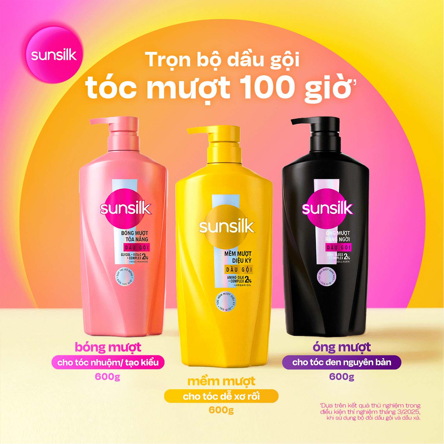 Dầu gội Sunsilk cho tóc Mượt 100h (Bóng mướt-Luminous UV / Đen óng-Glossy Black / Mềm mượt-Silky Smooth) 600g