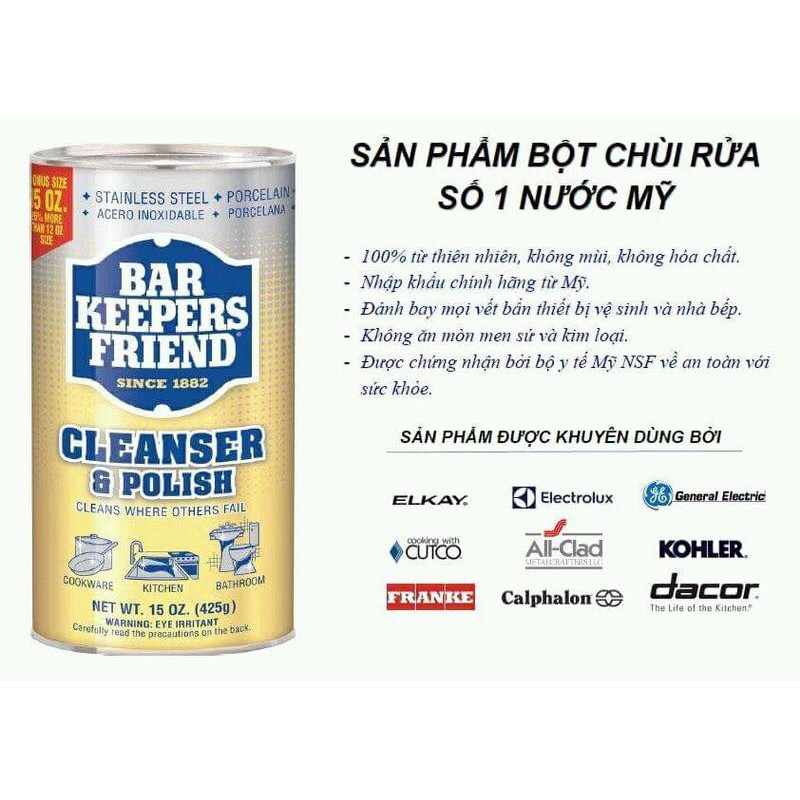 [HCM] Bột Làm Sạch Đa Năng Bar keepers friend ( BKF ) sạch bong kính, vòi, xoong nồi, vết ố,...