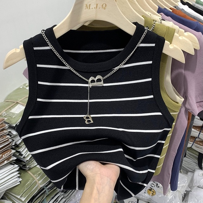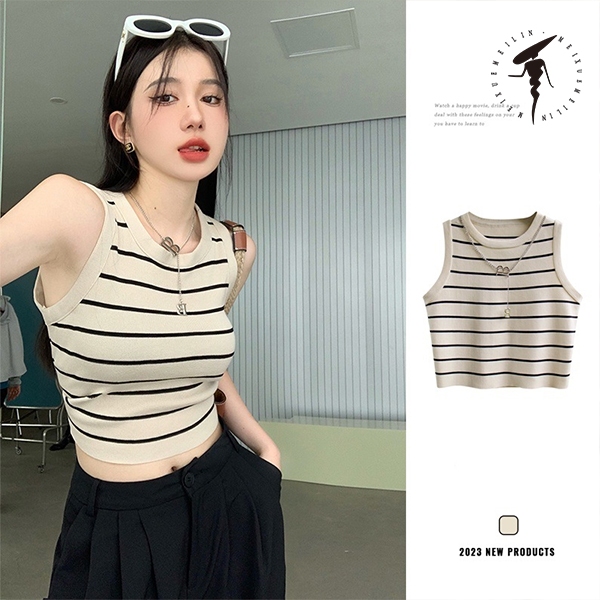 MeiXueMeiLin Áo sát nách ôm dáng họa tiết kẻ sọc 3 màu tùy chọn phong cách Hàn Quốc thời trang cho nữ(gửi Vòng cổ)