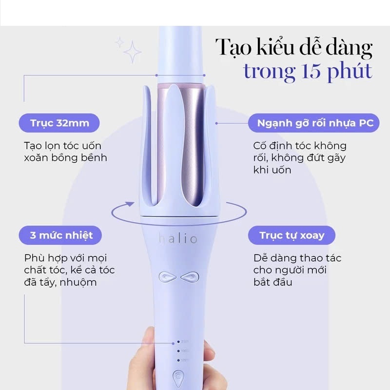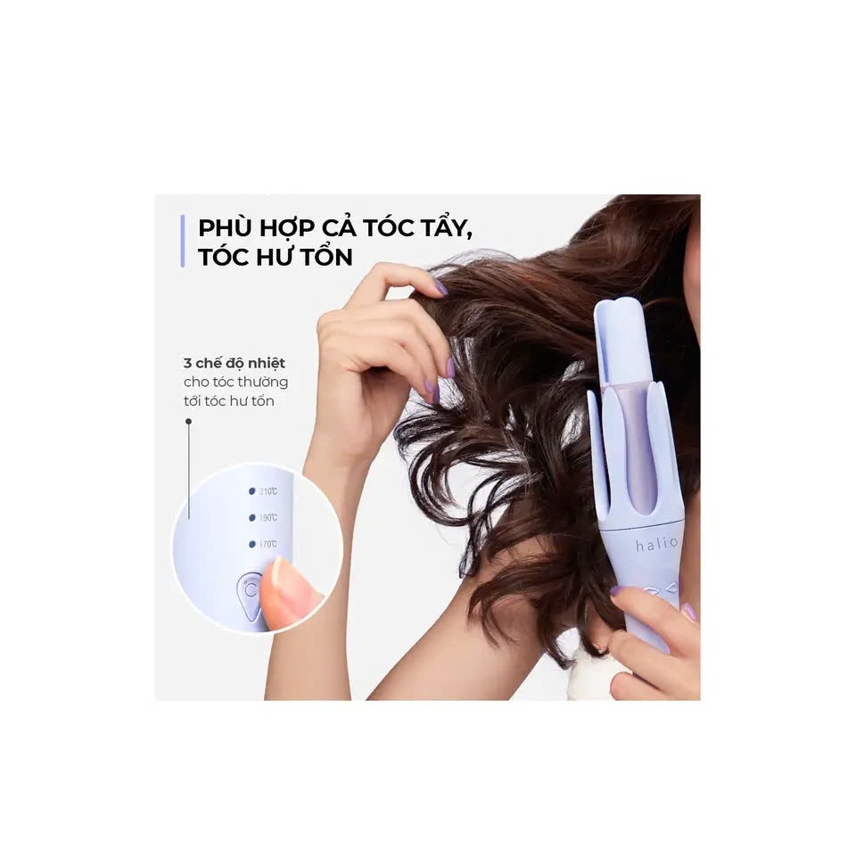 [LIVE] Máy Uốn Tóc Tự Xoay Ion Âm Halio instaCurl Premium Automatic Hair Style Màu tím Periwinkle- Hàng Chính Hãng