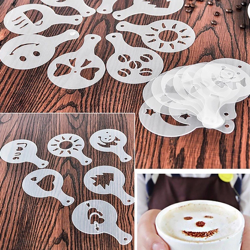 Tấm Rắc Bột 16 Tấm Latte Art Trang Trí - Khuôn Rắc Hình 16 Tấm Coffe