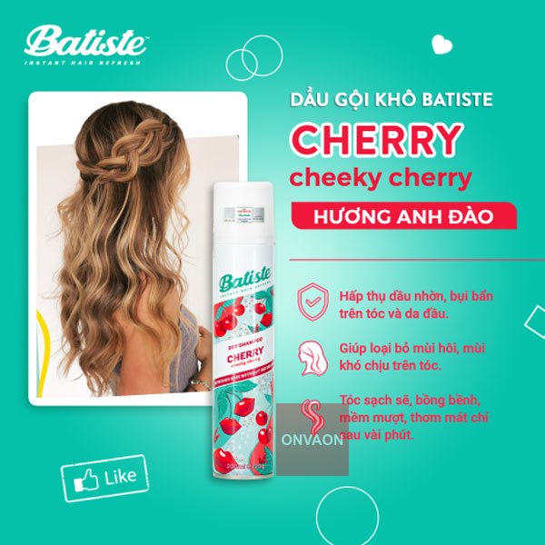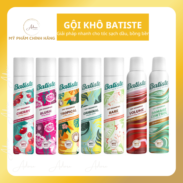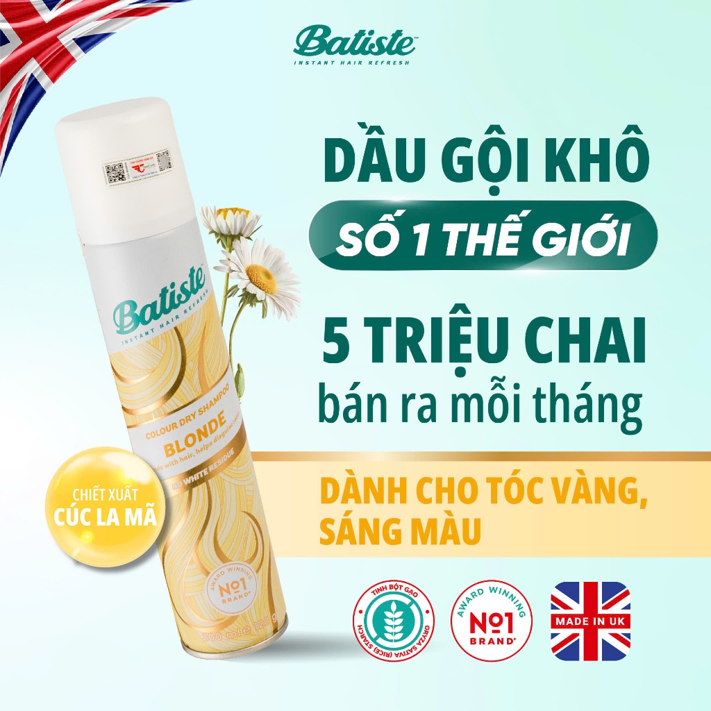 Dầu gội khô Batiste Dry Shampoo 200ml hút dầu nhờn, tạo phồng cho tóc đủ mùi hương