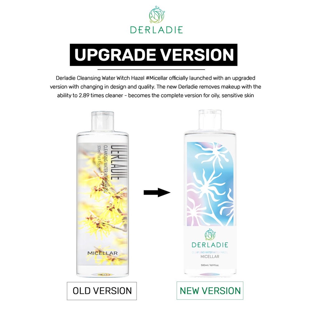 Nước tẩy trang cây phỉ làm sạch da dịu nhẹ Derladie Cleansing Water Witch Hazel Micellar 500ml