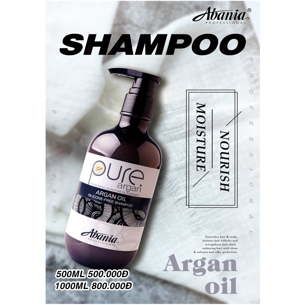 Dầu gội xả phục hồi trẻ hóa tóc Abania Argan Oil Shampoo & Conditioner 500ML