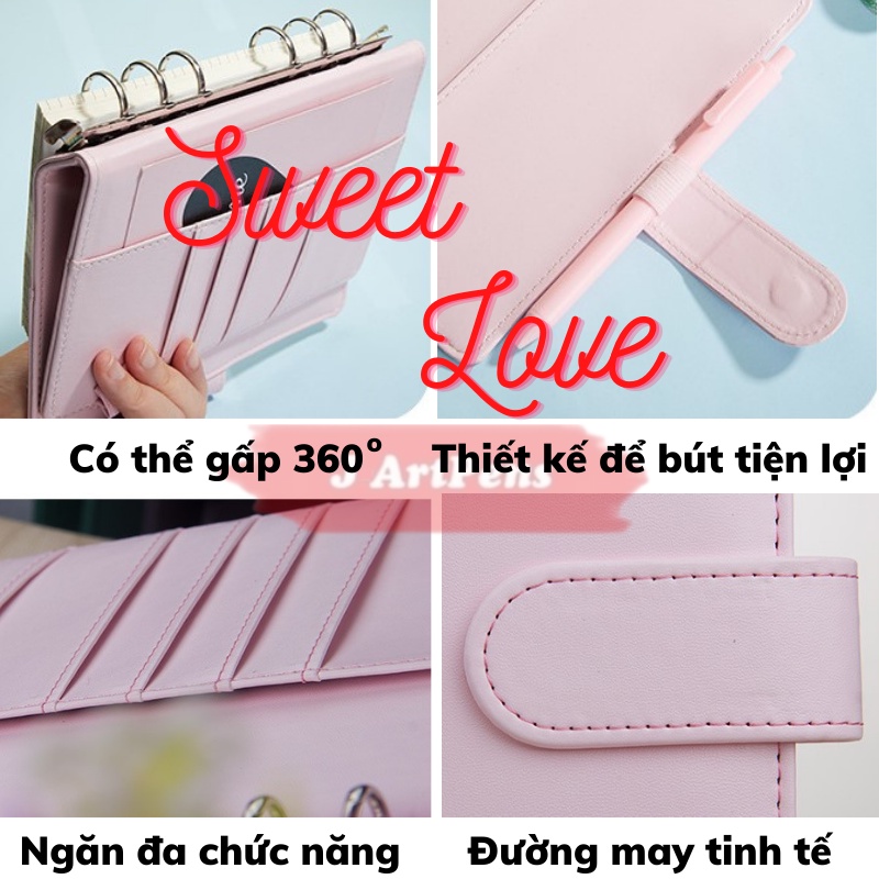Bìa Sổ Còng Da Sweet Love A6 A5 6 Lỗ Màu Pastel Siêu Đẹp Nhiều Màu Sổ Còng Planner Sổ Tiết Kiệm Binder Bullet Journal
