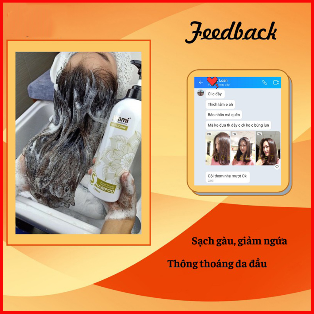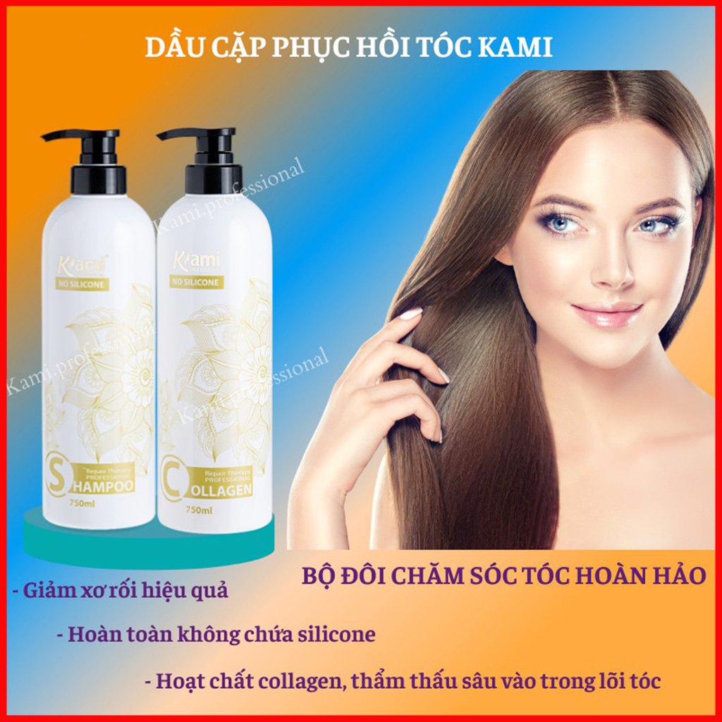 Dầu gội, dầu xả Kami chính hãng siêu phục hồi tóc, dầu gội không silicon 2*750ml chính hãng
