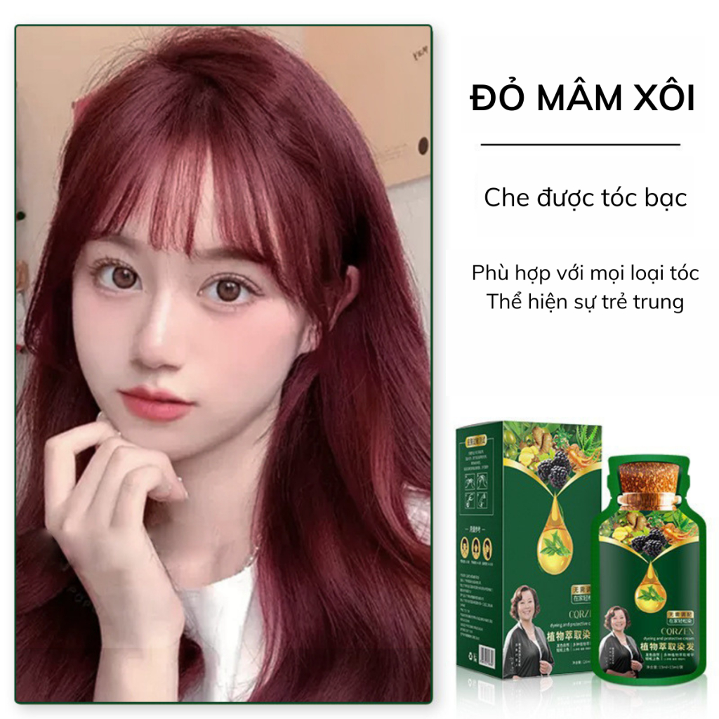 Dầu Gội Nhuộm Tóc Thảo Dược CQRZEN, Phủ Bạc Tóc Bền Màu Lâu Phai Hộp 10 Gói, Dành Cho Nam Nữ Nội Địa Trung Cao Cấp A2