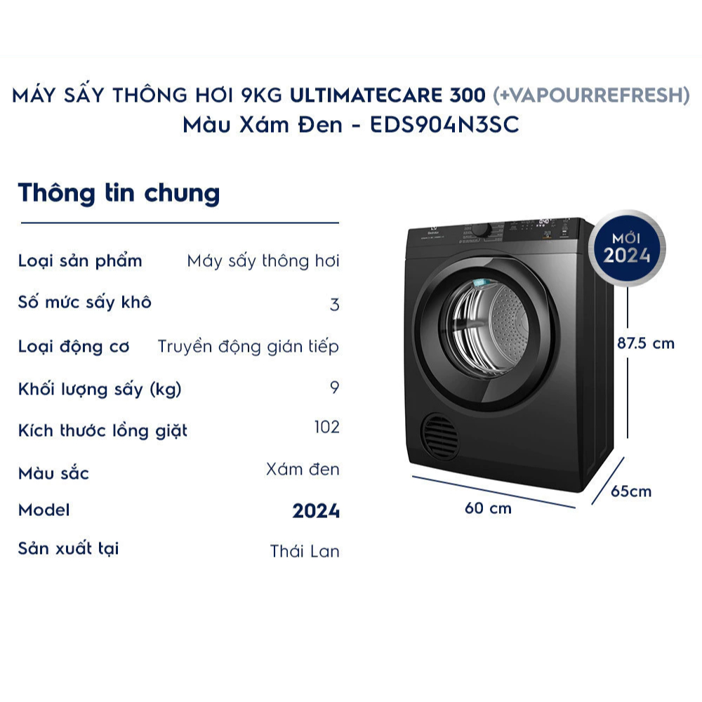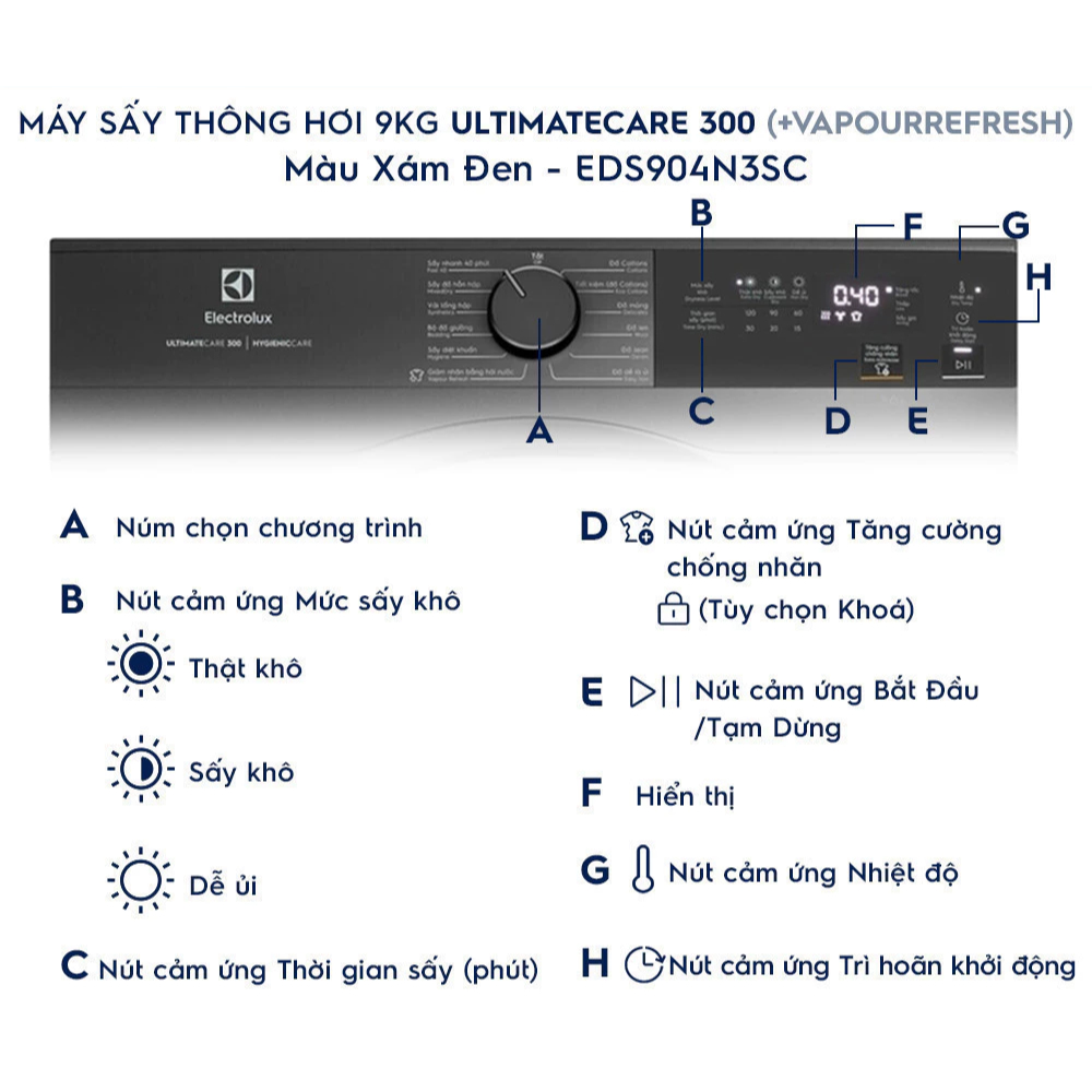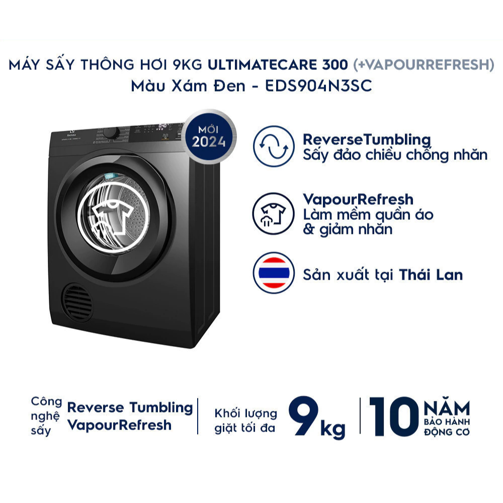 EDS904N3SC - Máy Sấy Quần Áo Thông Hơi ELECTROLUX 9 Kg UltimateCare 300 - Xám đen Onyx [Toàn Quốc]