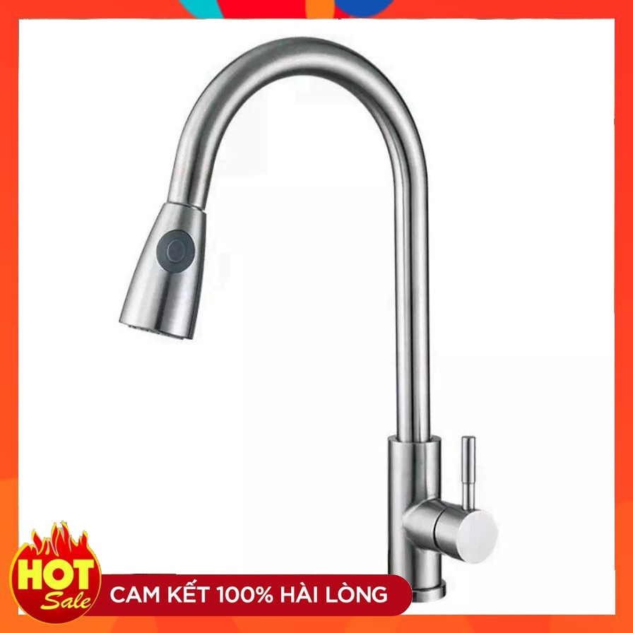 Vòi rửa bát, rửa chén nóng lạnh GIORMANI inox 304 cao cấp dây rút VRB25 - tặng đôi dây cấp nước inox